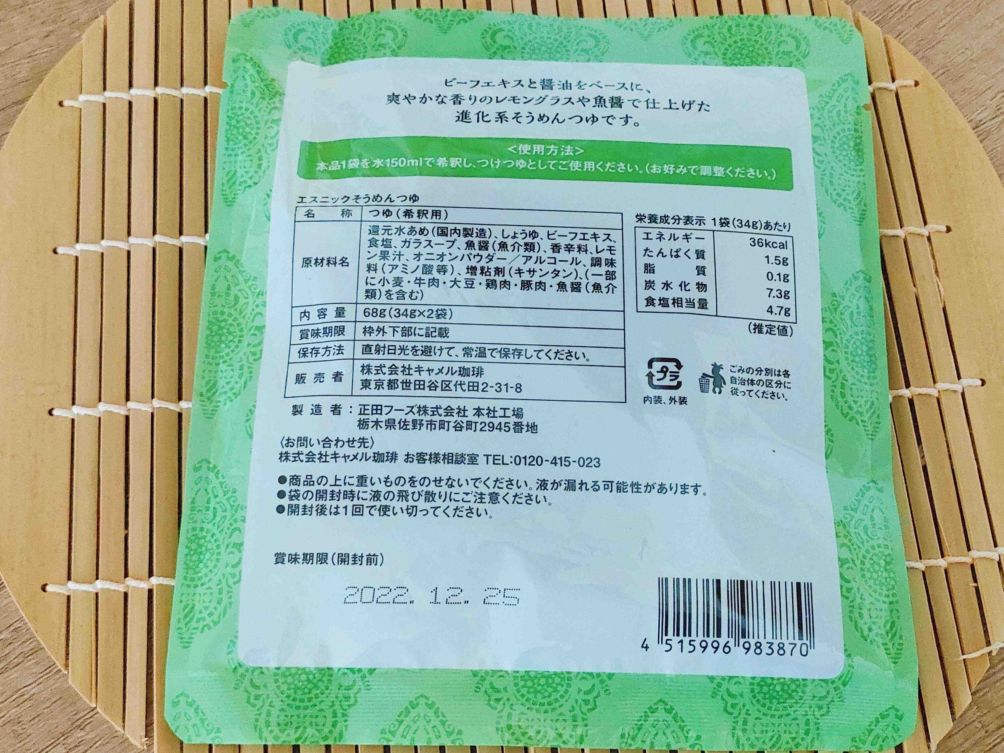 こちらが「エスニック素麺つゆ」180円です。2袋入り。