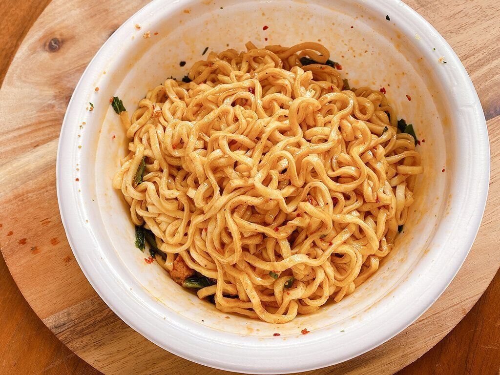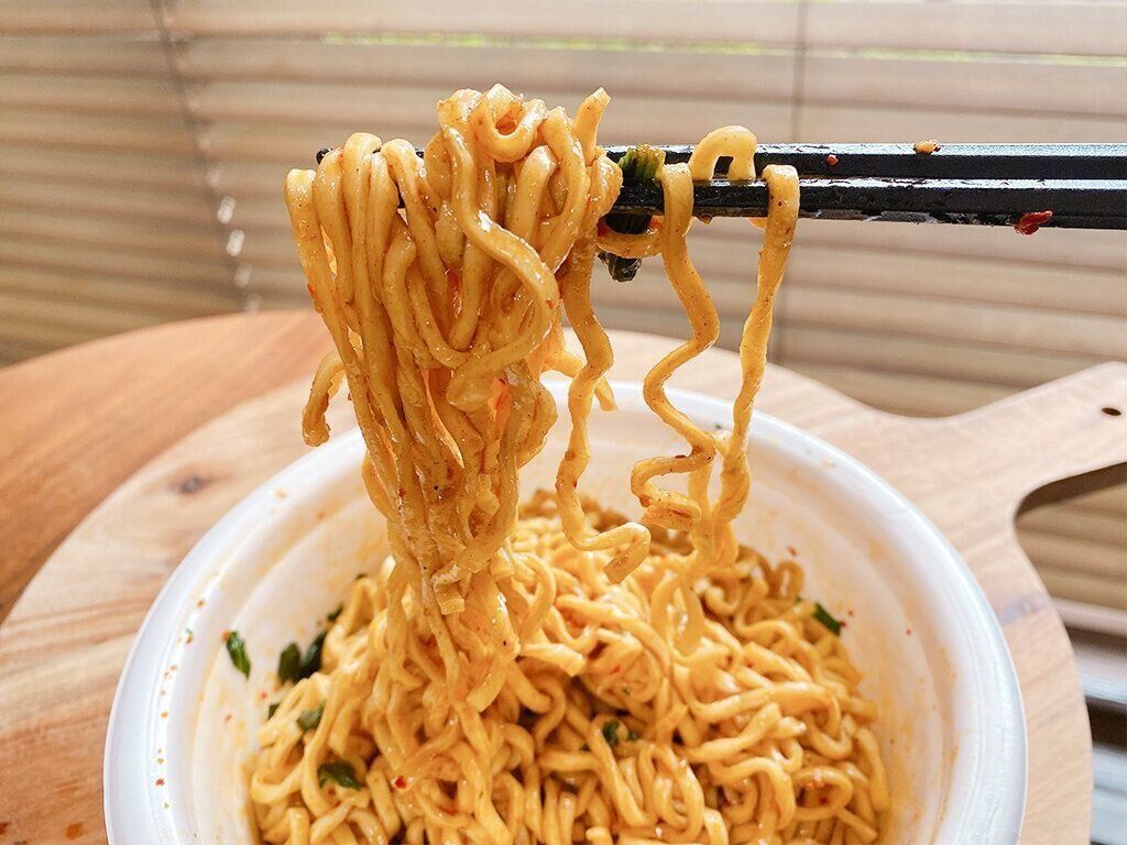 そして、韓国のいわゆる激辛麺よりは旨みが強い印象だったので、残っていた半分の辛いソースを全部入れてみました。辛いけど、その中にも旨みがちゃんとあってすごく食べやすかったです。