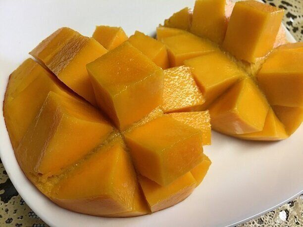 トミー種とケント種の2種類あり、繊維がなくとろける口当たりでとっても甘いケント種をリピート買いしています。店頭に並んでいるものはまだ熟しきっていないので自宅で追熟させてからいただきます。