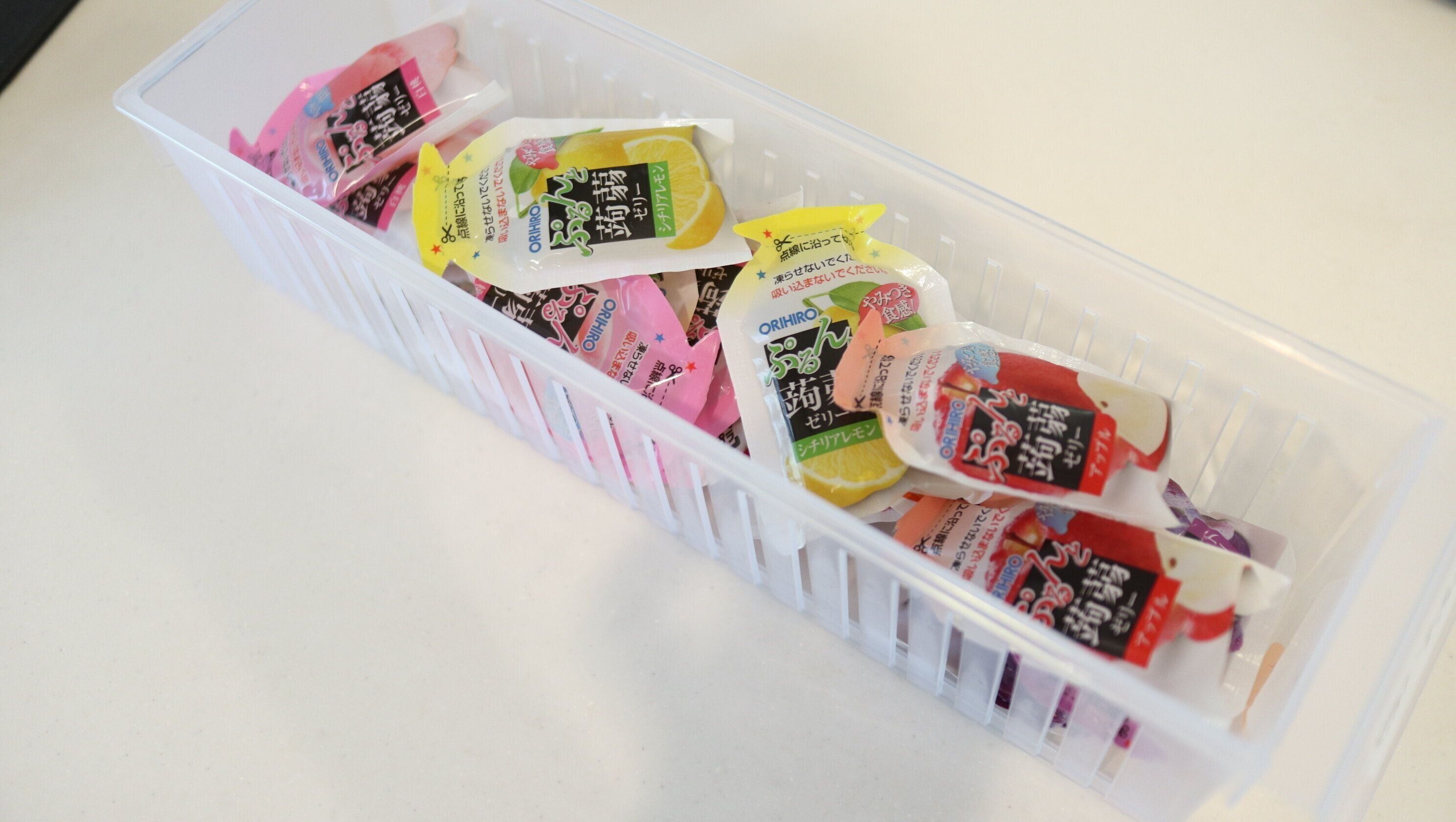 常備する食品は収納ケースで定位置をつくってあげると、買い忘れ・買いすぎ防止にもなりますよ!