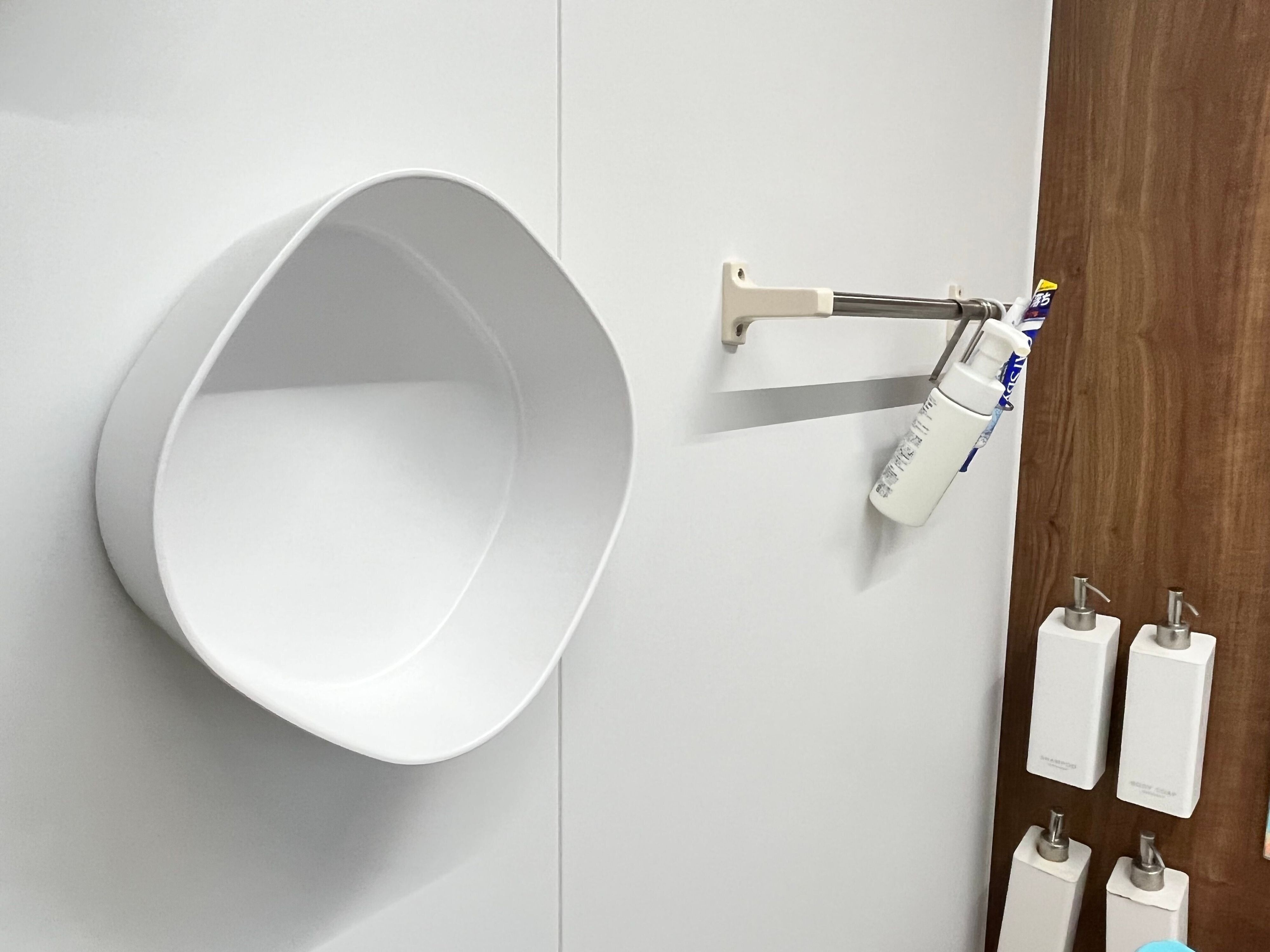 S字フックにかけていたときよりも、片づけが省略化でき、湯おけに残った水気もしっかり乾燥させることができました。