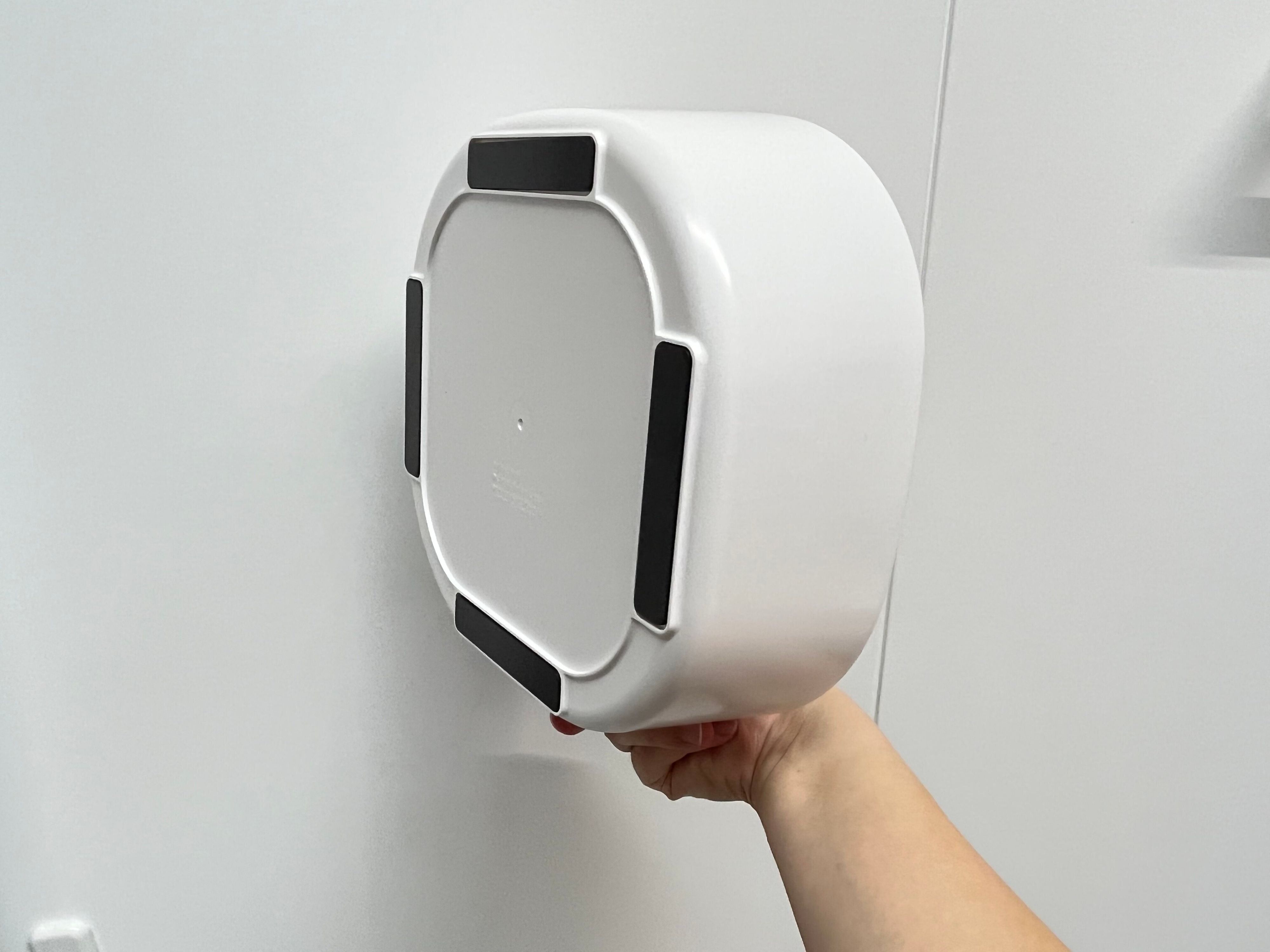 湯おけの裏面を見てみると…なんとマグネットが顔を見せました。4ヵ所にマグネットがくっついています。