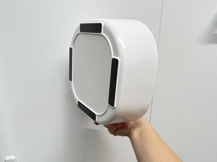 使ってみると、おけの小ぶりなサイズはまったく気になりませんでした。使い終わったあと、壁に湯おけの底を押しつけるようにしてみると、見事にピタっとくっついてくれました。これは、気持ちいい!
