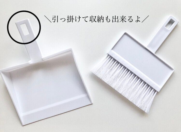ムダのないシンプルでオシャレなデザインの、こちらの『ほうき&ちりとりセット』。コンパクトなサイズなので、使いたいときにサッと取り出してすぐに使えるので、凄く便利なんです。さらに、ほうきとちりとりを薄く重ねられるし、引っかけられる穴も空いているので、スッキリ収納することができます。