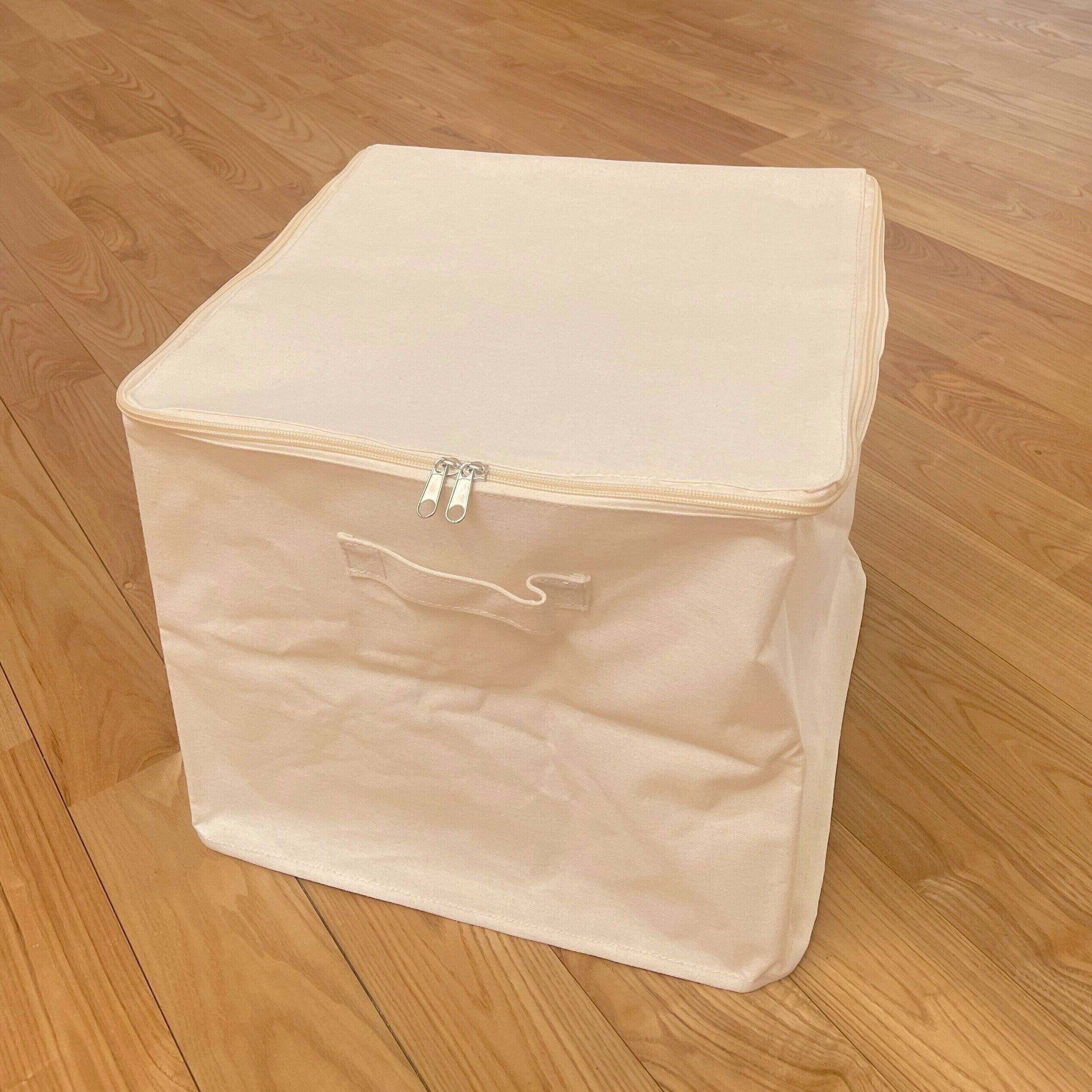 ファスナーで開閉するふたつき収納BOX。サイズは、縦35×横35×高さ32cmで収納力抜群!