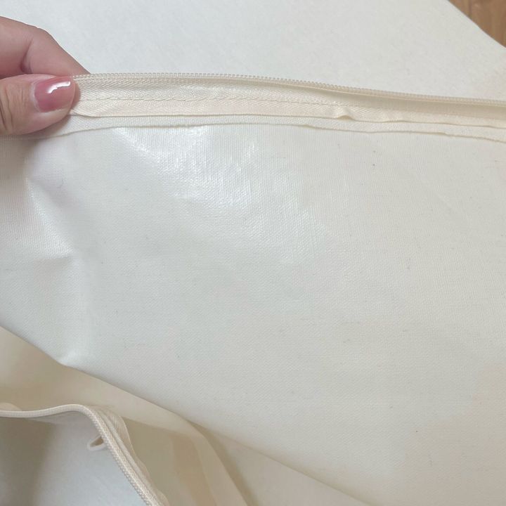 紹介した収納BOXの表面は布製ですが、内側はツルっとしたPEコーティングが施されています。内側が汚れた場合は、拭き取ることでキレイをキープできるのでお手入れも楽ですよ!