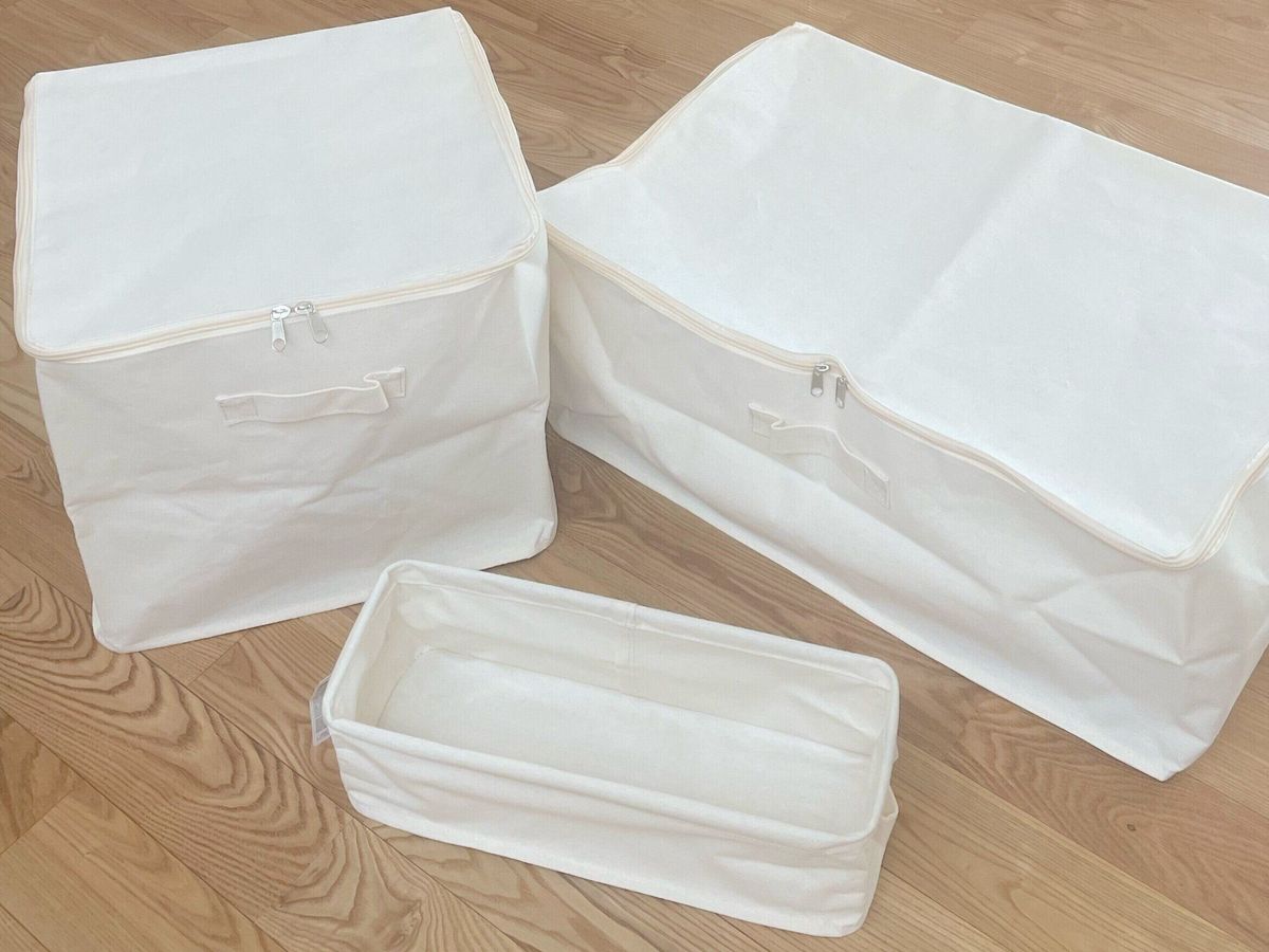 生成りカラーの布製収納BOX