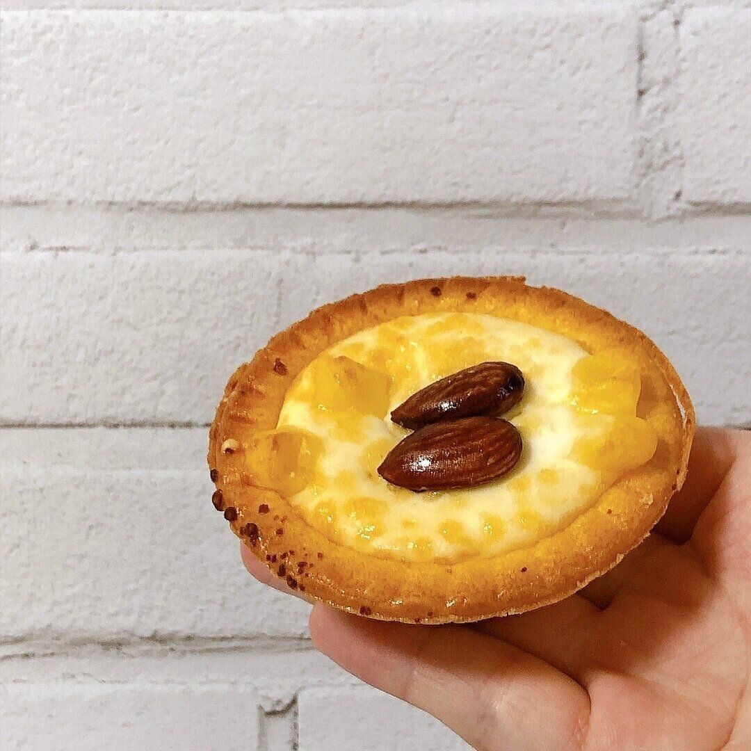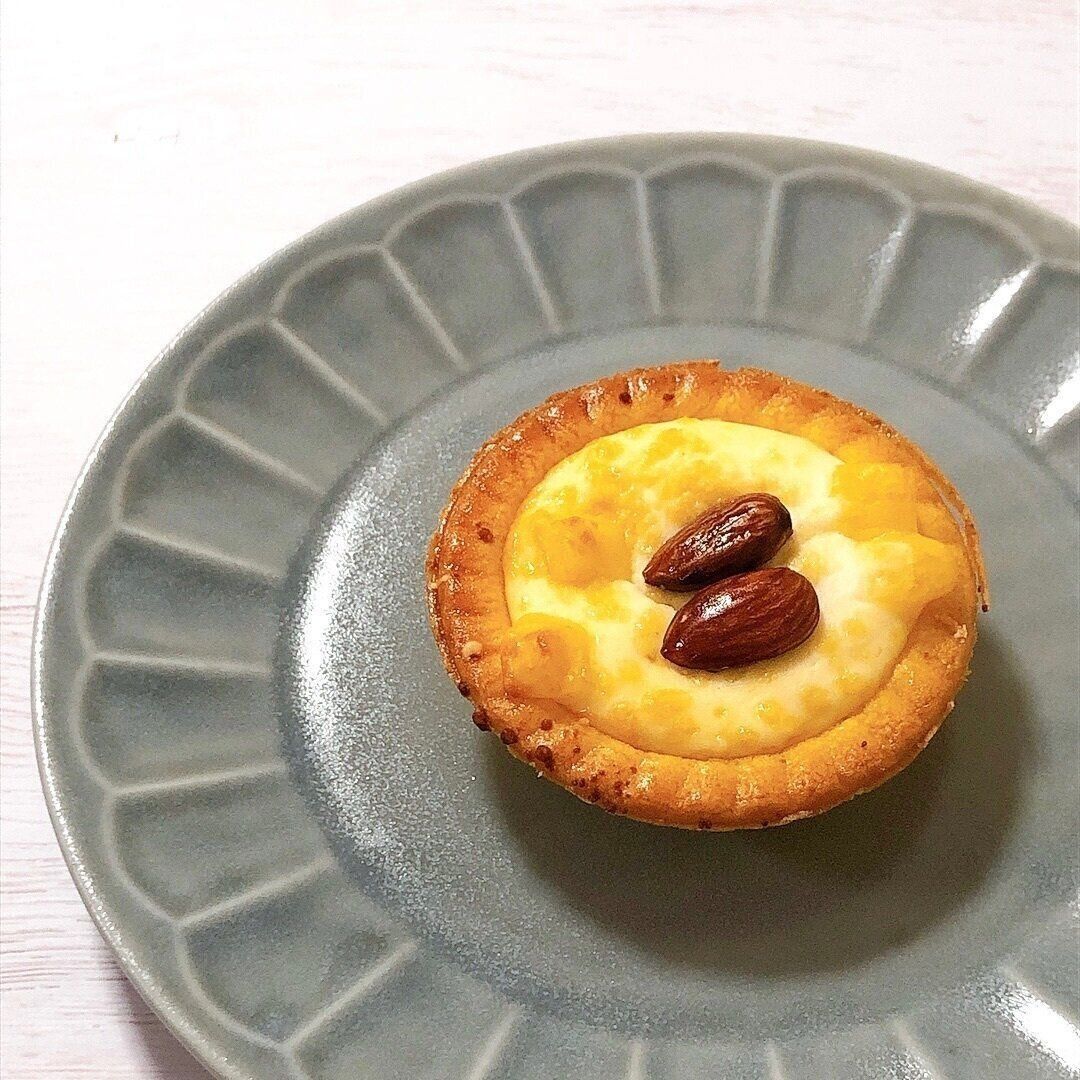 クリームチーズの生乳感と酸味の後に、濃厚なチーズのコクが出てきて、複雑な味の変化が専門店のチーズタルトような本格的な味わいです。タルトとアーモンドはざくざくと香ばしく、食感と味のアクセントになっています。