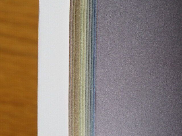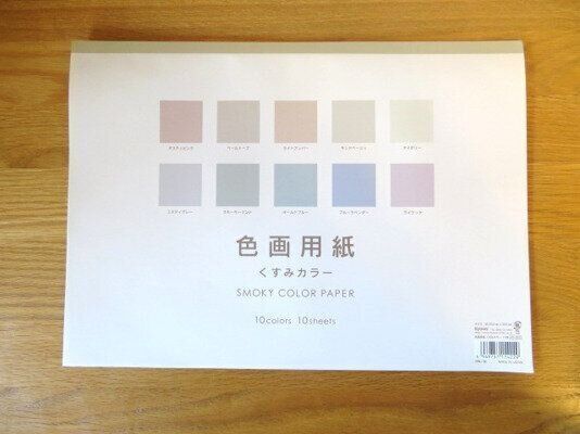 文房具などを取り扱うコーナーで売られていた、スモーキーな色合いの画用紙10枚のセットです。大きさは、約253mm×352mm。B4サイズよりわずかに小さい感じです。