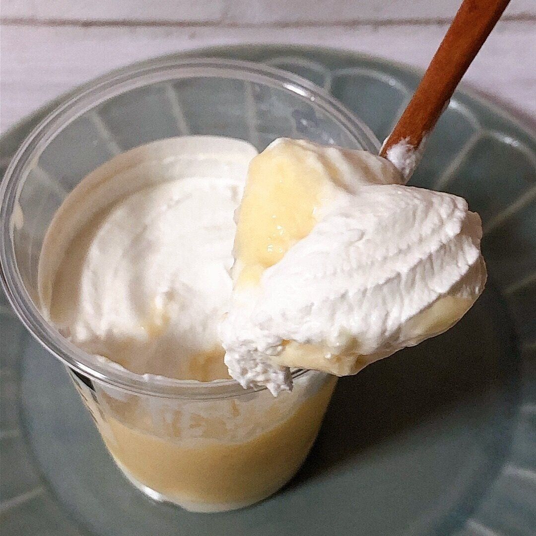 ふんわりホイップの下には、元気が出そうなビタミンカラーの果皮入りレモンミルクゼリー。そして、葛のクラッシュミルクゼリーも、閉じ込められています。シチリア産レモン果汁ソース入りです。
