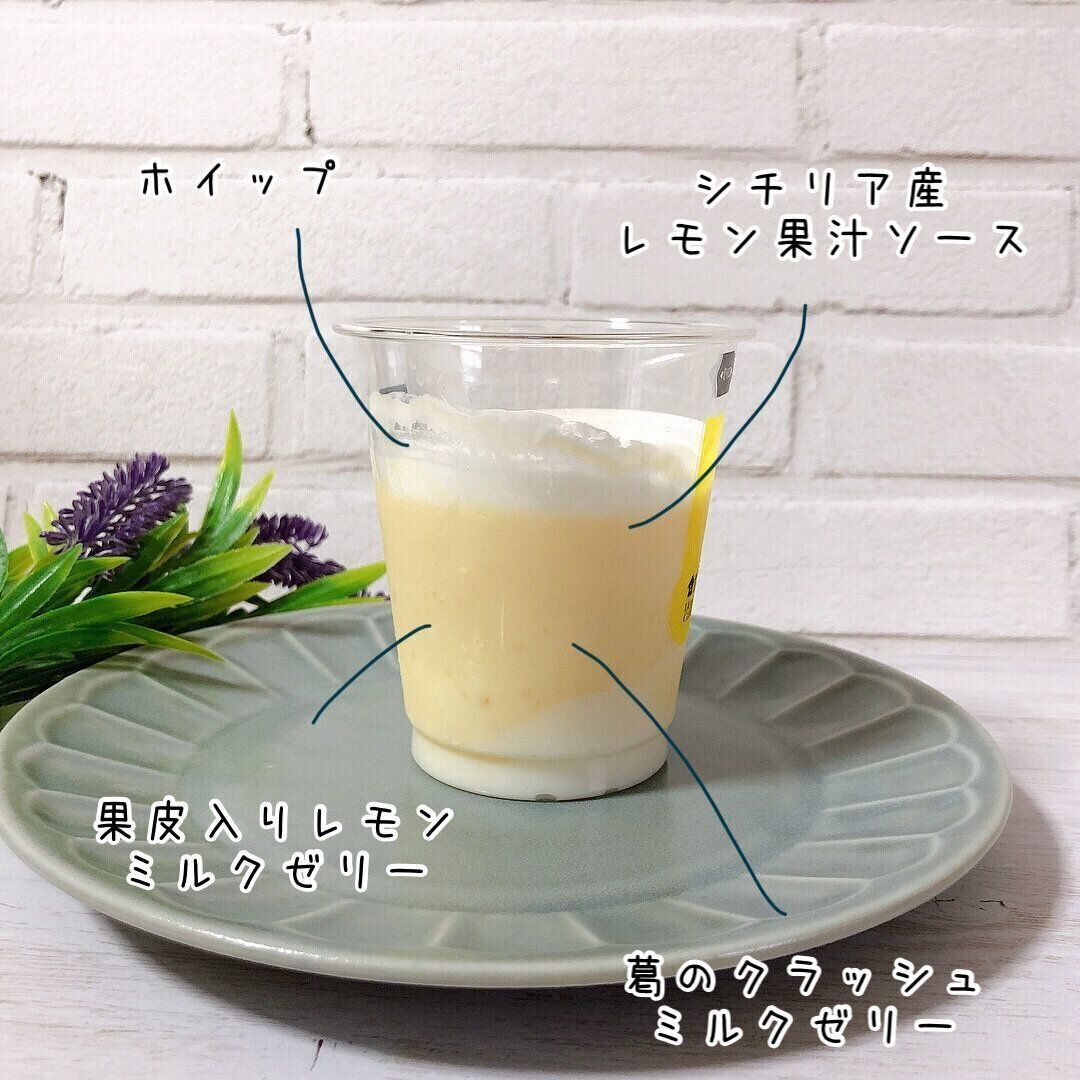 じゅるじゅるっと喉越しいい「レモンミルクゼリー」に、粒の食感がある「葛入りクラッシュミルクゼリー」。2種のゼリーの食感の違いが楽しく、これにより食べ応えのよさもアップしています。