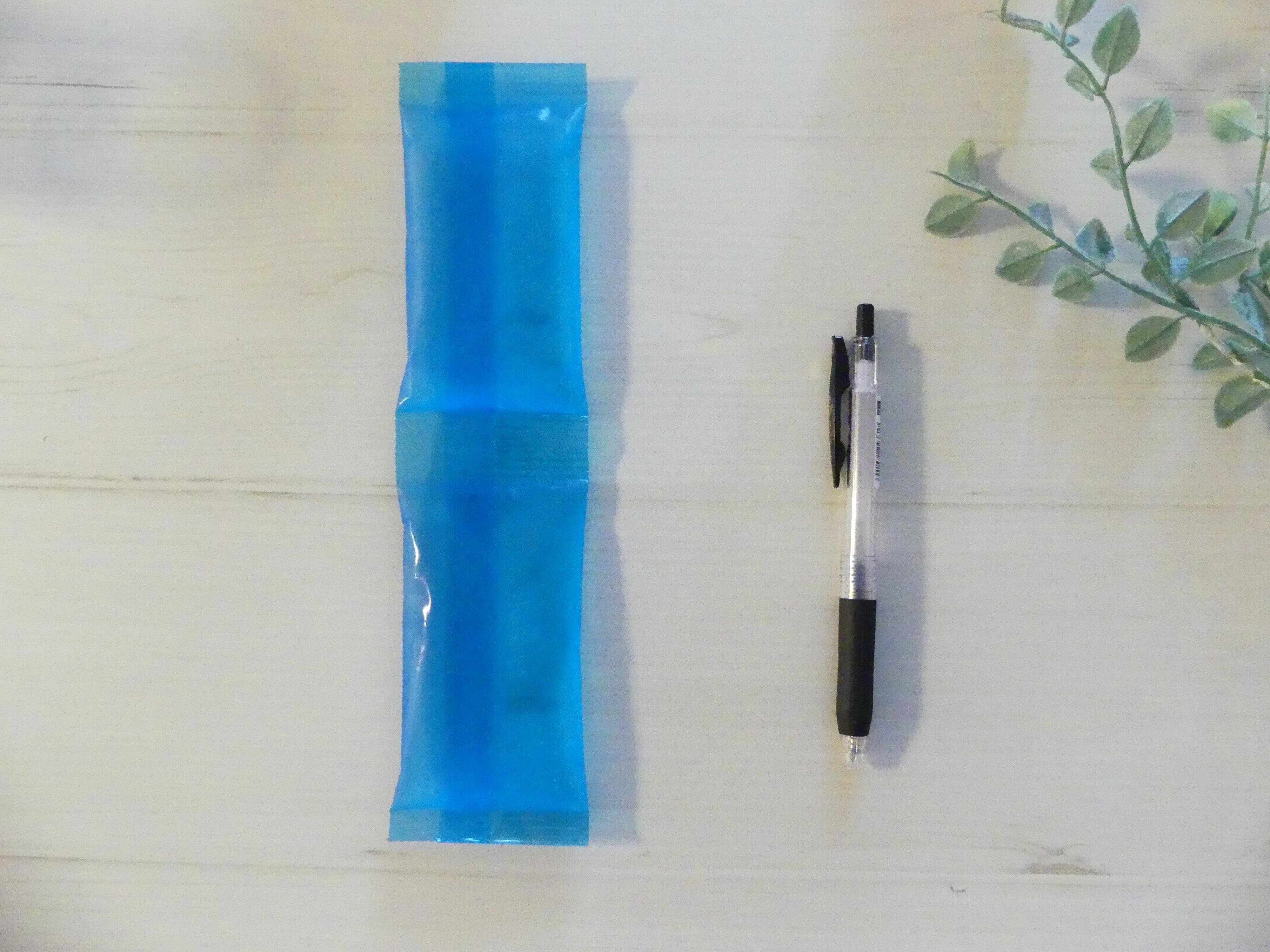 こちらの商品を冷凍庫に入れて冷やしておくと、ひんやり冷たくなるアイスジェルです。見た目は、細長い保冷剤ようですよね。しかし、触り心地は保冷剤と違って、カチカチになりにくく、やわらかいままなので首回りに巻けるようになっています。