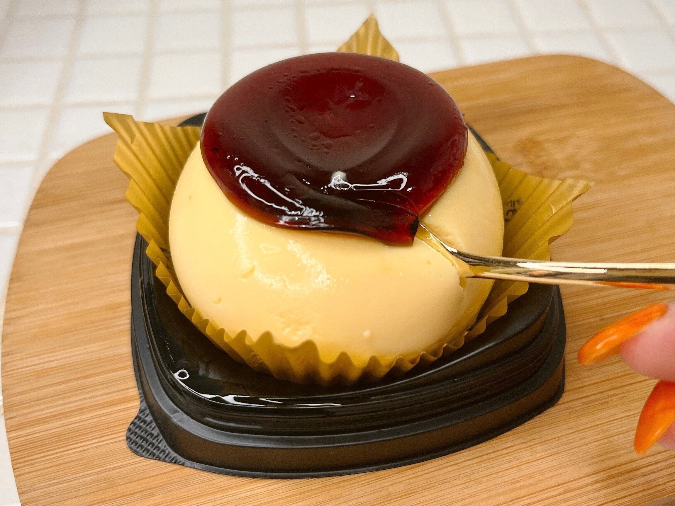 見た目はまるでプリンですが、味はケーキの新感覚なスイーツ。ぜひ食べてみてください。