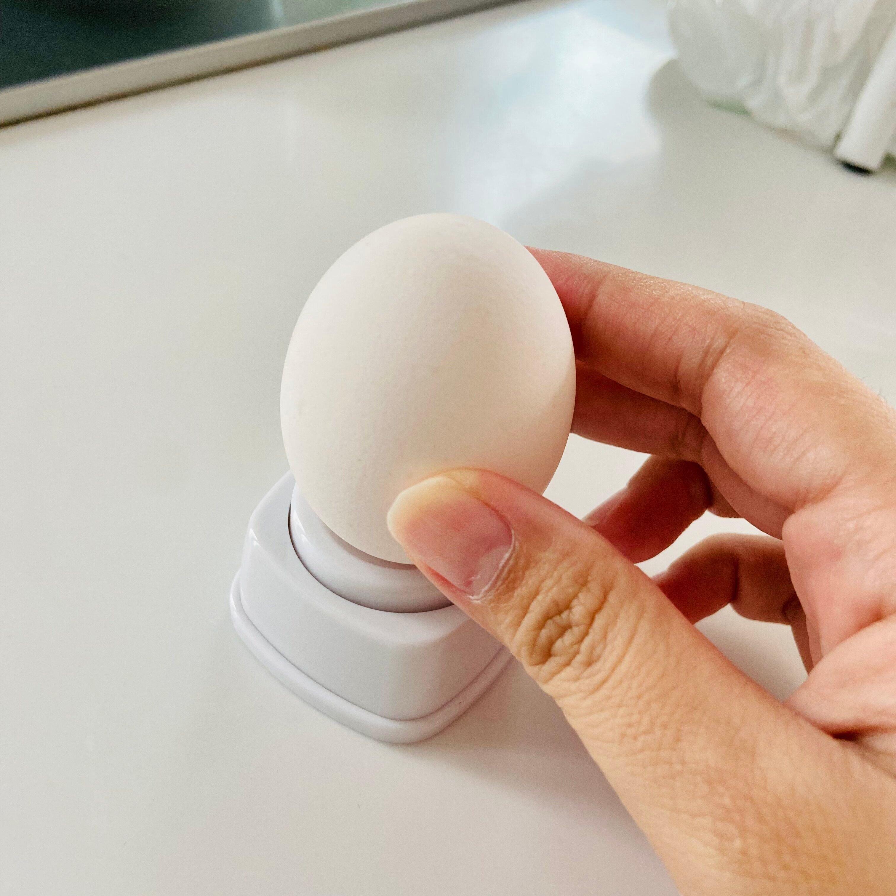 実際に穴あけ器を使ってみると、卵を針が出る部分に当てて軽く押すだけで簡単に穴をあけられました。