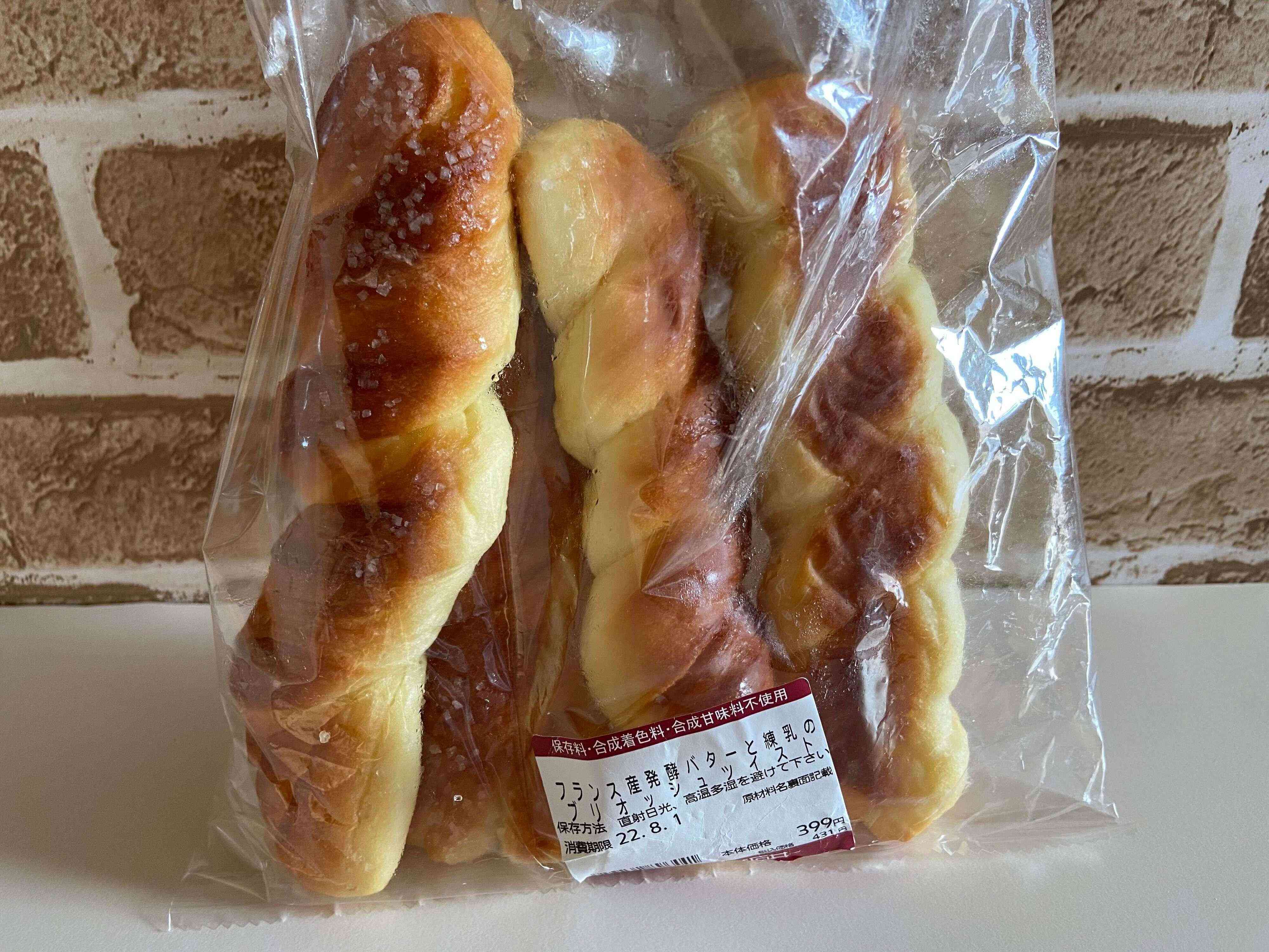 成城石井に新登場の「フランス産発酵バターと練乳のブリオッシュツイスト」(購入時:431円)。