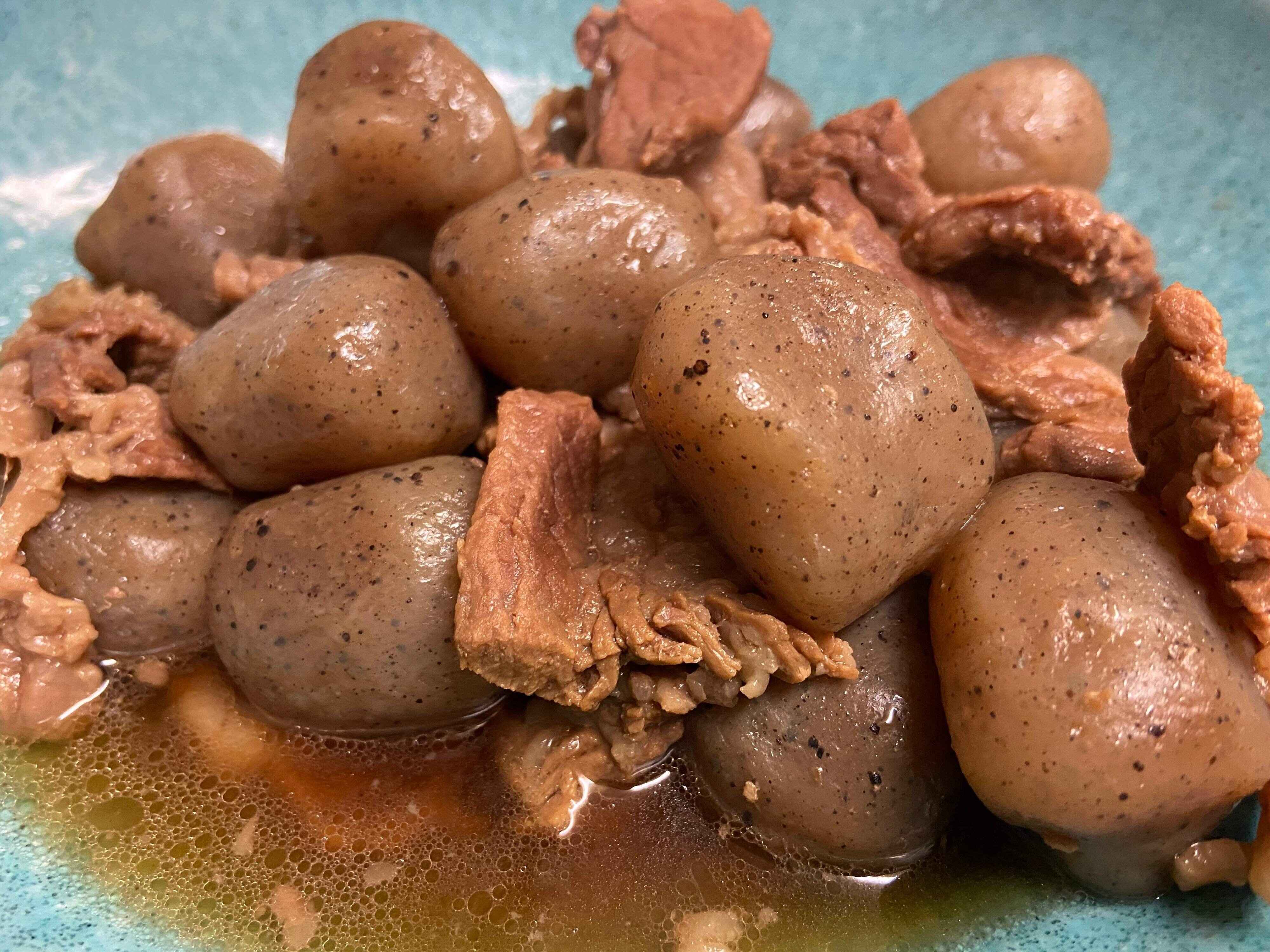 筆者はちょうど牛すじ肉があって煮込んでいたので仕上げにこの玉こんにゃくをプラスし軽く煮てみました。