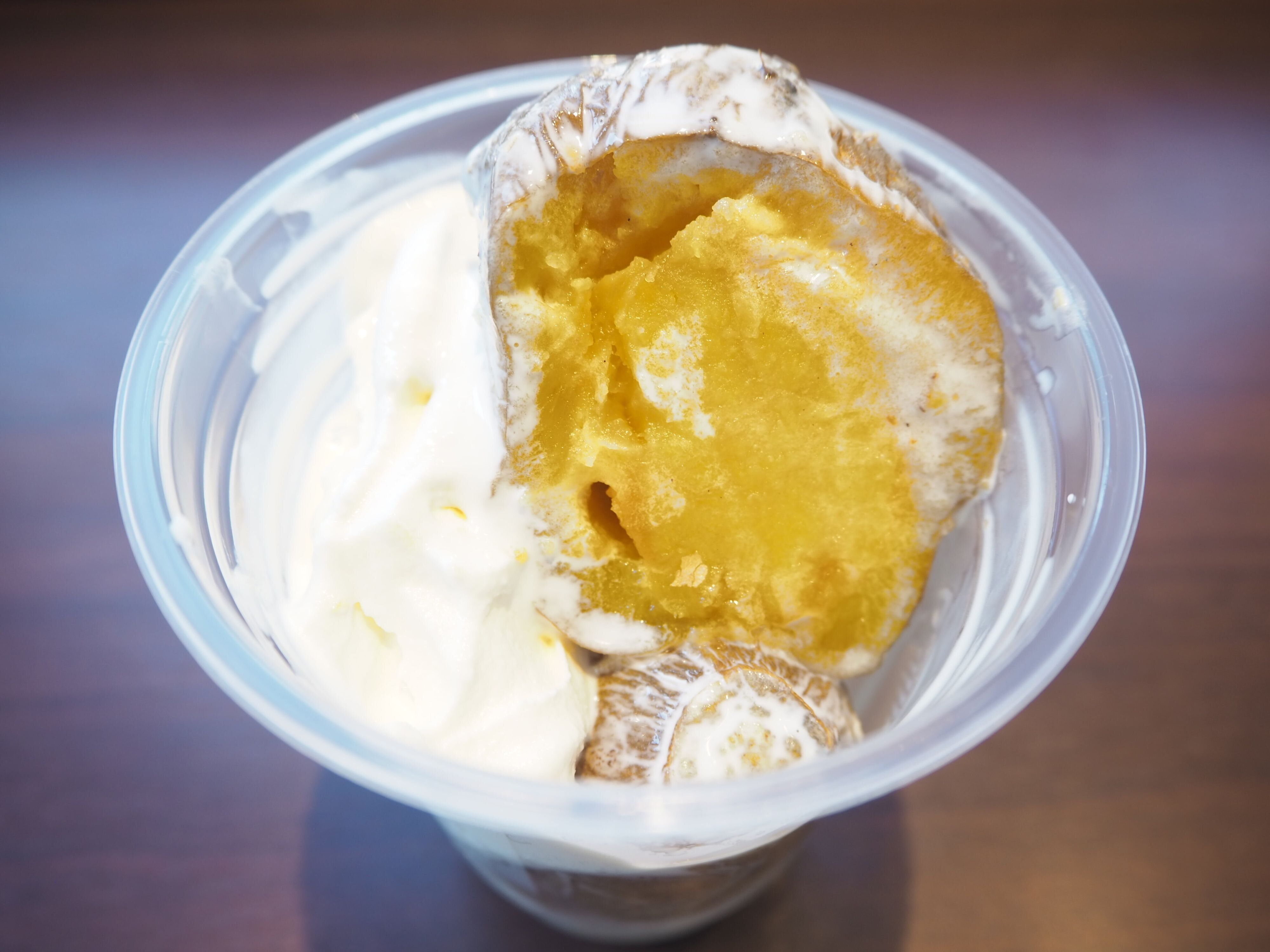 冷たい「ソフトクリームバニラ」と、秋の温かいスイーツの代表格である焼芋の両方を楽しめるという欲張りなスイーツでした。甘み、香り、食感の3拍子がそろっていて、食べて損はないはず。