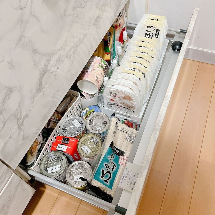 その他に、本当に非常時に食べるものをプラスする、くらいの感覚なら、収納場所も圧迫しなくて済みます。気づいた時が見直し時。期限切れの食品がそのままになっていないか、ぜひご確認ください。