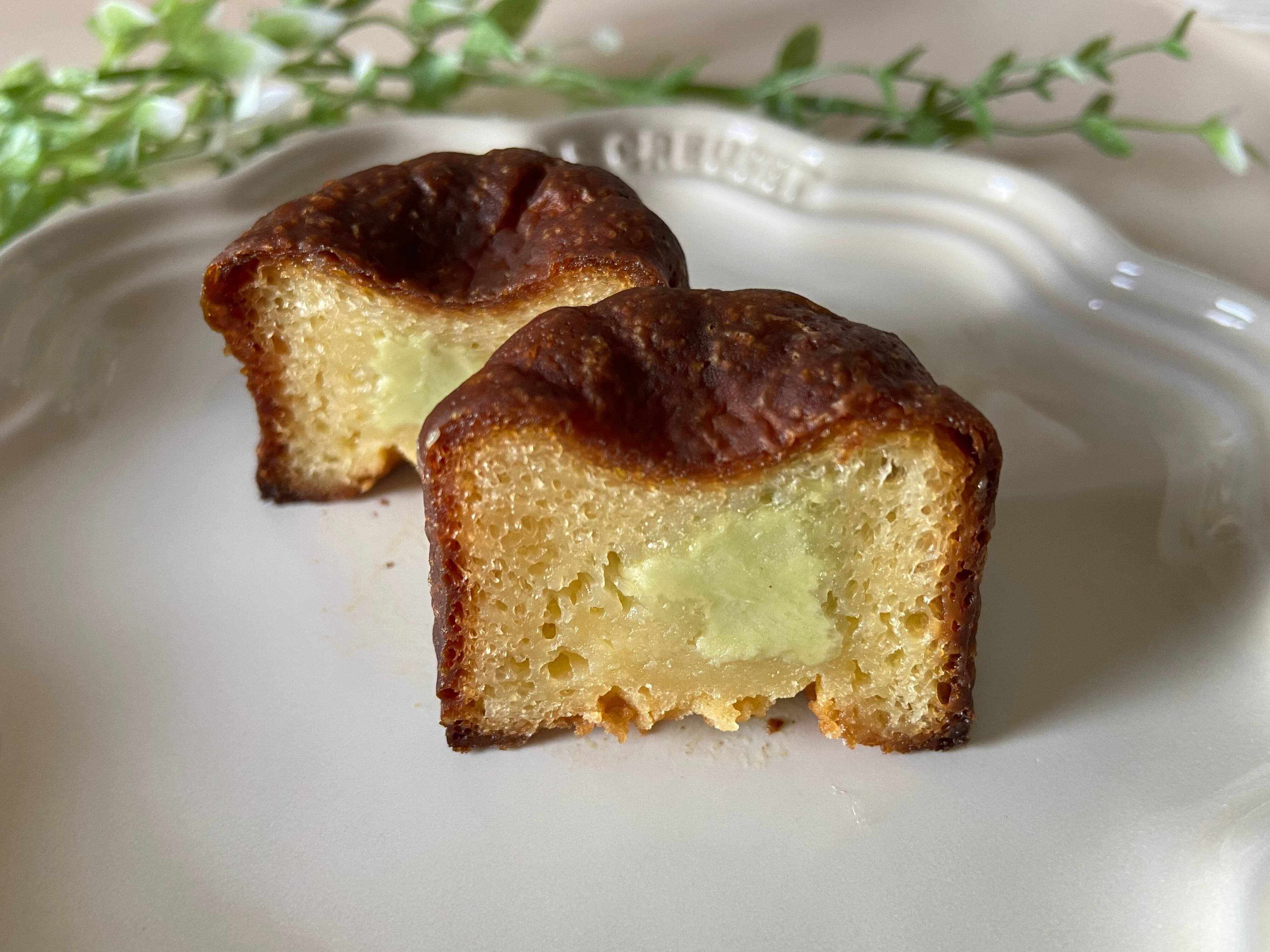 中央にはピスタチオクリームが。なめからでふんわりピスタチオの香ばしい香り。カヌレの生地とピスタチオクリームの味わいが絶妙にマッチして上品でおいしいスイーツでした。
