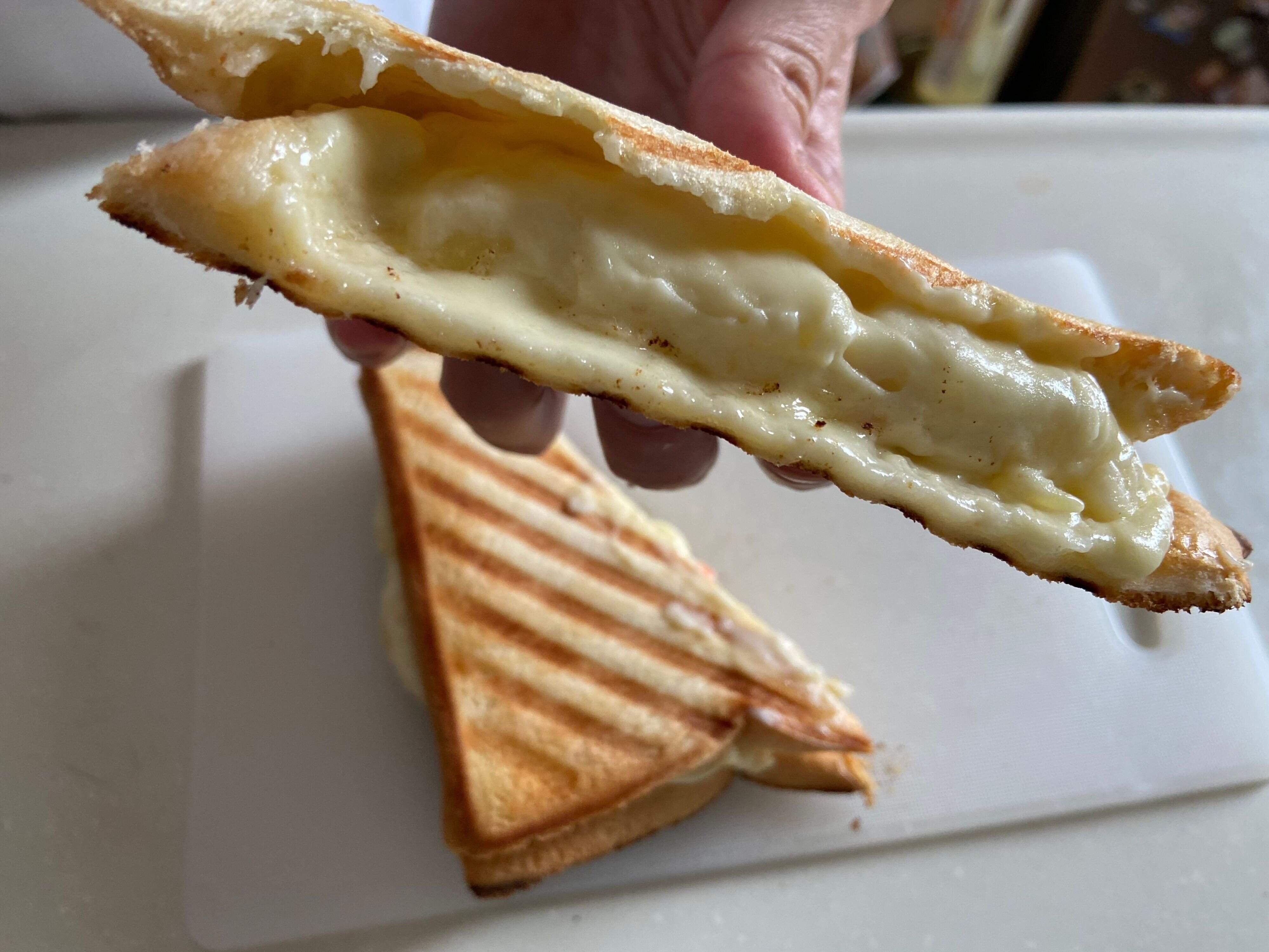筆者が最近ハマっているのはホットサンド。食パンにスライスチーズとポテトサラダをサンドしてこんがり焼いたらとろとろでボリューム満点の一品に。