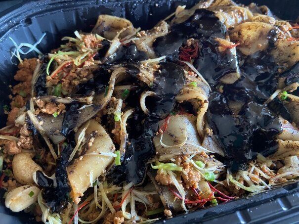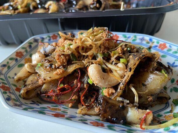 食べてみると辛さは控えめで黒ごまソースにコクがあり香ばしく、極太麺によくからみます。麺はもっちもちで食べ応え抜群。カシューナッツの甘みとカリッとした食感がいいアクセントに。