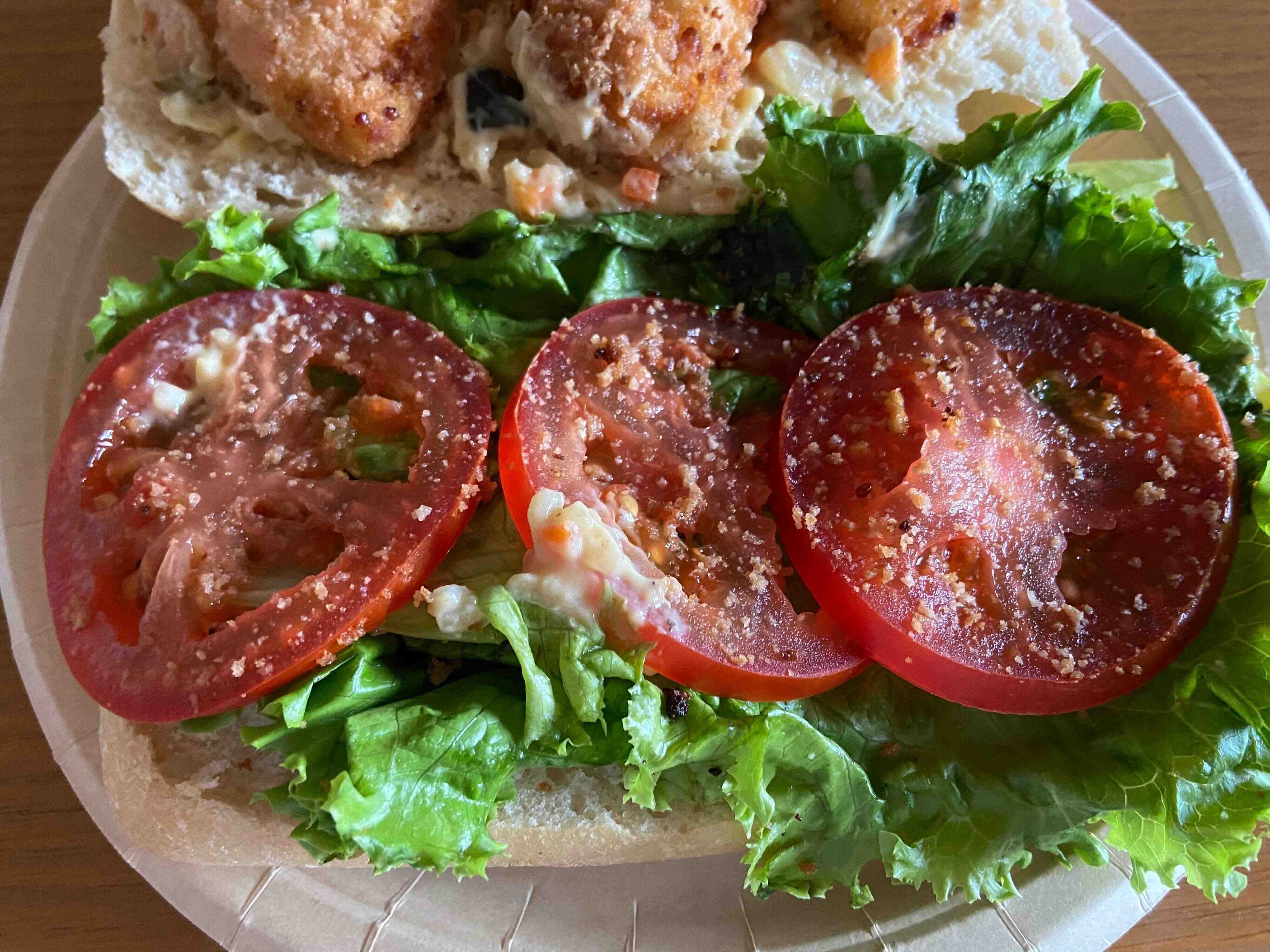 フリルレタスとスライストマトが3枚。たっぷり野菜が入っているのはうれしいですね。