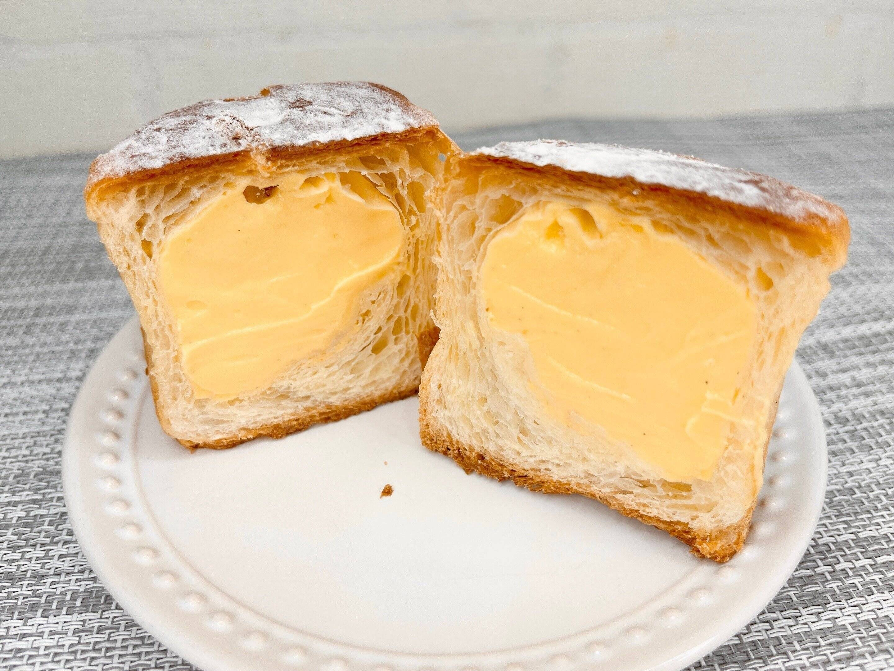 カットするとデニッシュパンの中にカスタードホイップがたっぷり入っています。