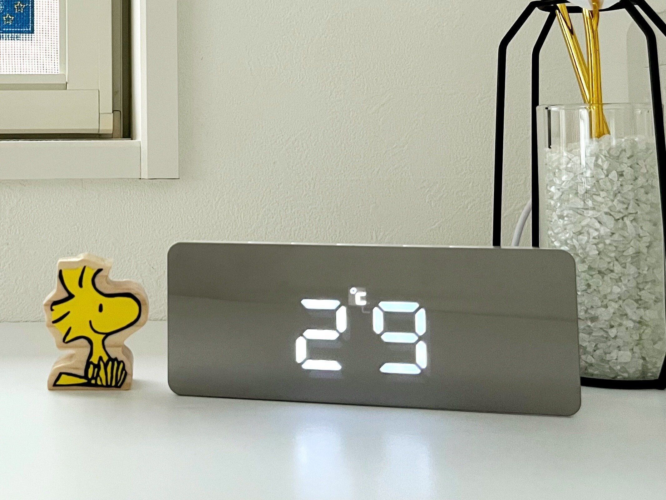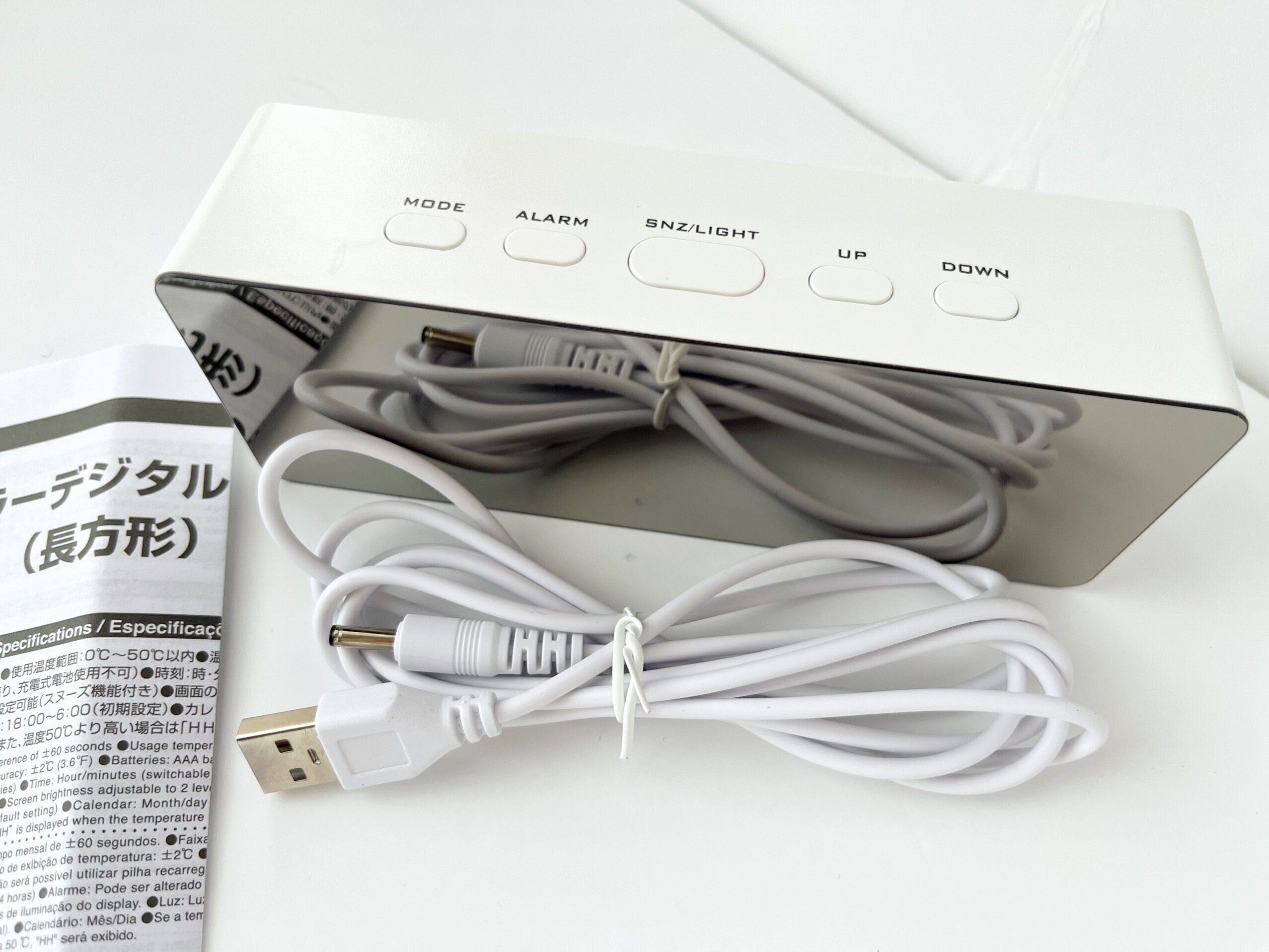 機能:時計、日付、温度の表示。アラーム、明るさ2段階の省電力モード付き。