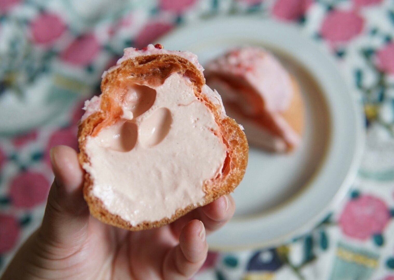 ちなみに、商品名にあるとちおとめ苺は生カスタードクリームのピューレと果汁に使用されているそうです。ピンク色で、バニラビーンズも確認できる生カスタードクリームは、甘いだけではなく甘酸っぱさも持ち合わせているのが印象的で、苺の香りにも癒されます。クランチといちごコーティングの甘味、ドライストロベリーの酸味、濃厚なクリーム、食べる箇所により少しずつ味が変わる楽しさ、満足度ナンバー1納得の美味しさでした。