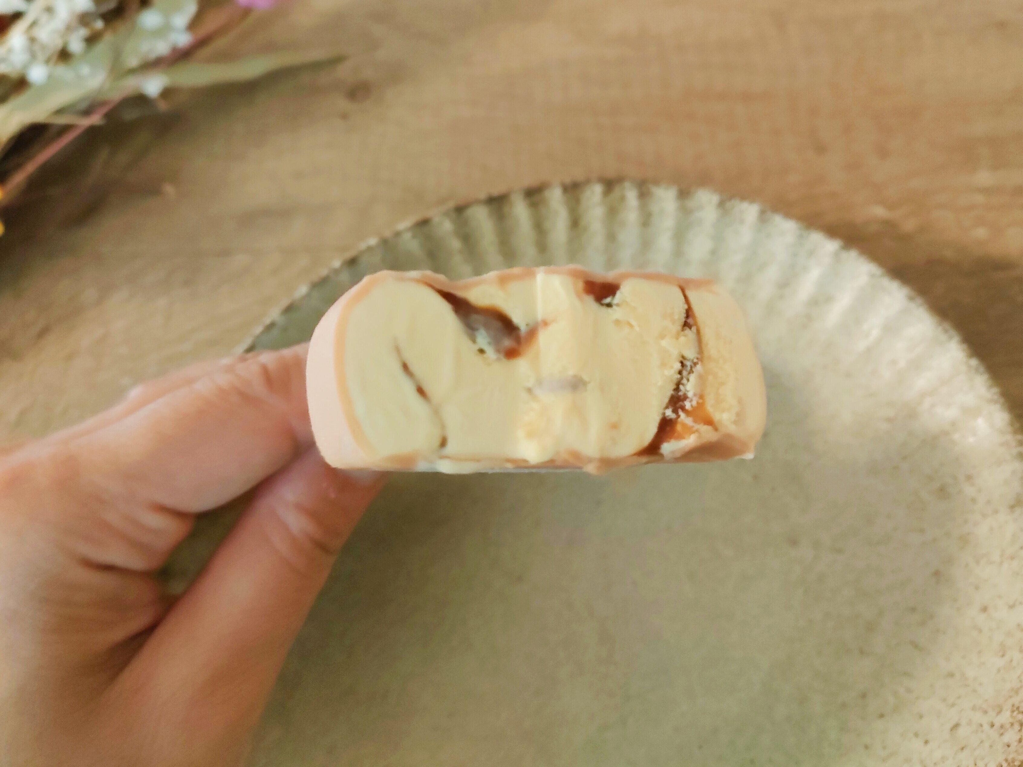 外側のチョコレートはキャラメルチョコになっていて、パルム特有の柔らかさは健在!