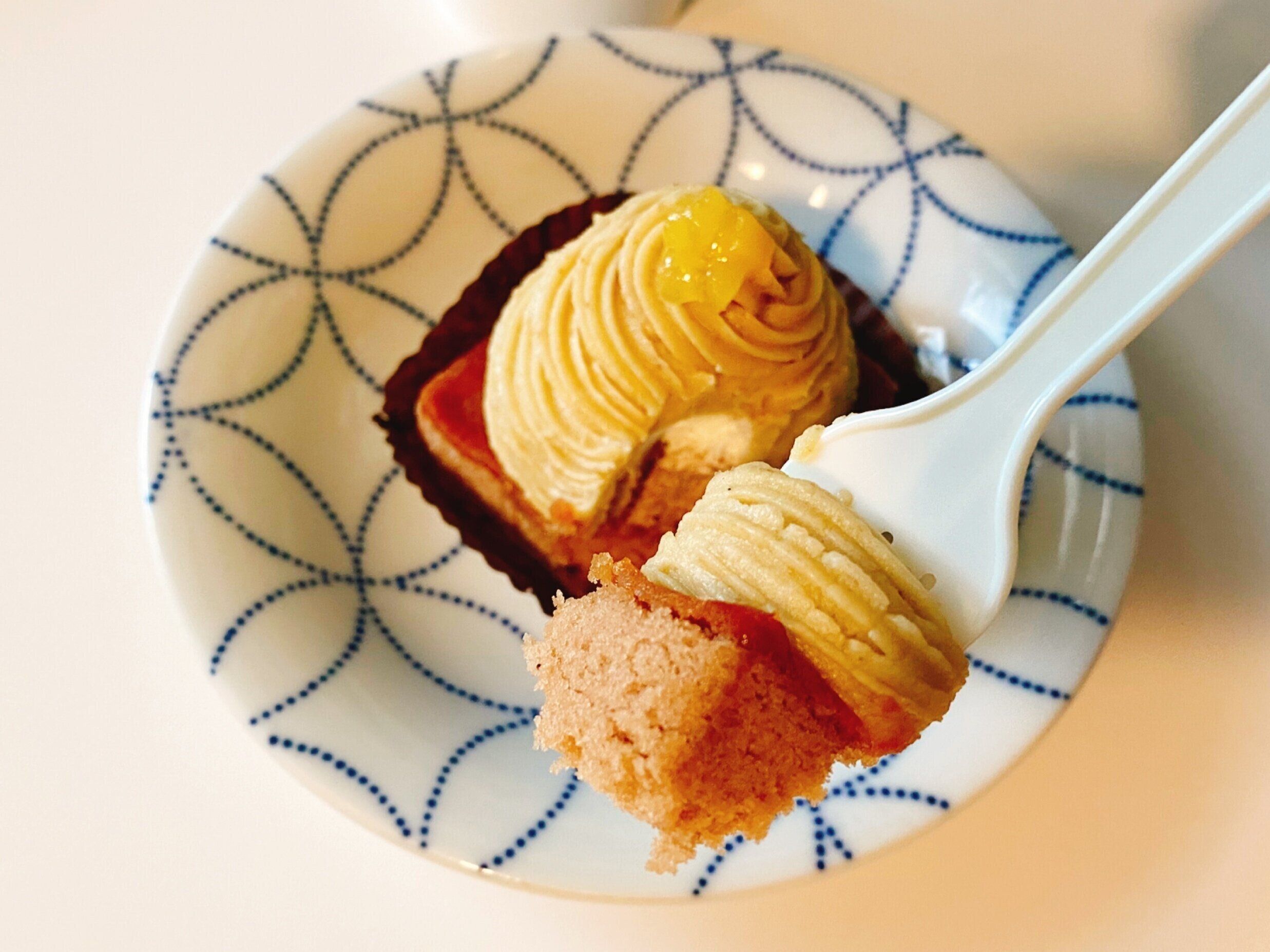 食べてみると、まろやかな優しい栗の甘さを感じます。クリーミーなマロンムースやホイップリクームは口当たりがなめらかで、マロンスポンジ生地とベストマッチします。