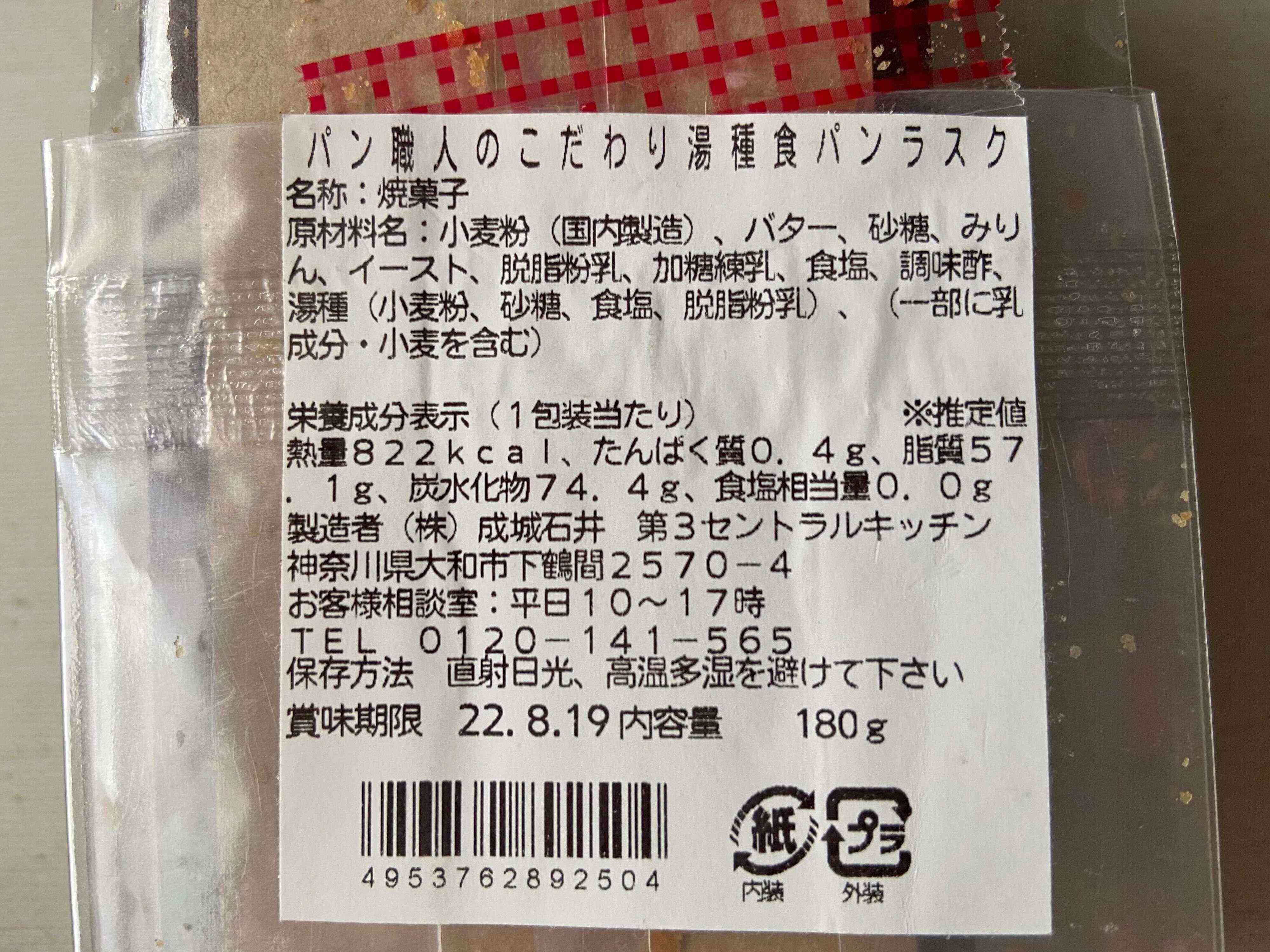 成城石井のパンコーナーで見つけた「パン職人のこだわり湯種食パンラスク」(購入時:334円)。