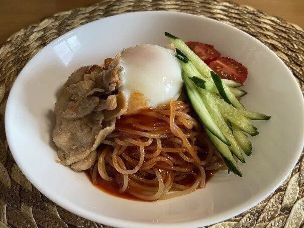辛さは控えめで旨みがたっぷりのタレがつるつるもちもちの麺にからんでおいしい!温玉をくずしながら食べるとまろやかになり最高です。