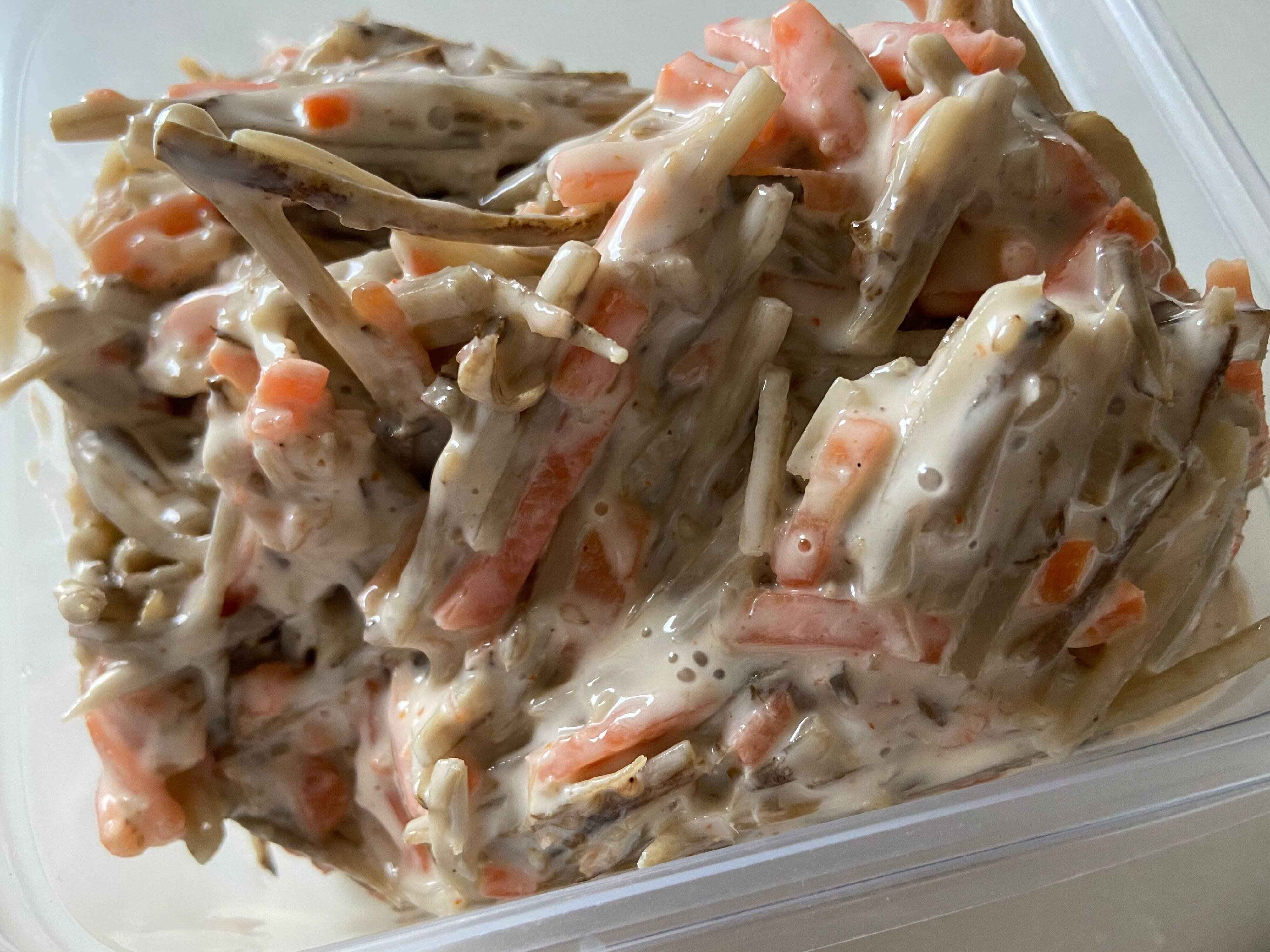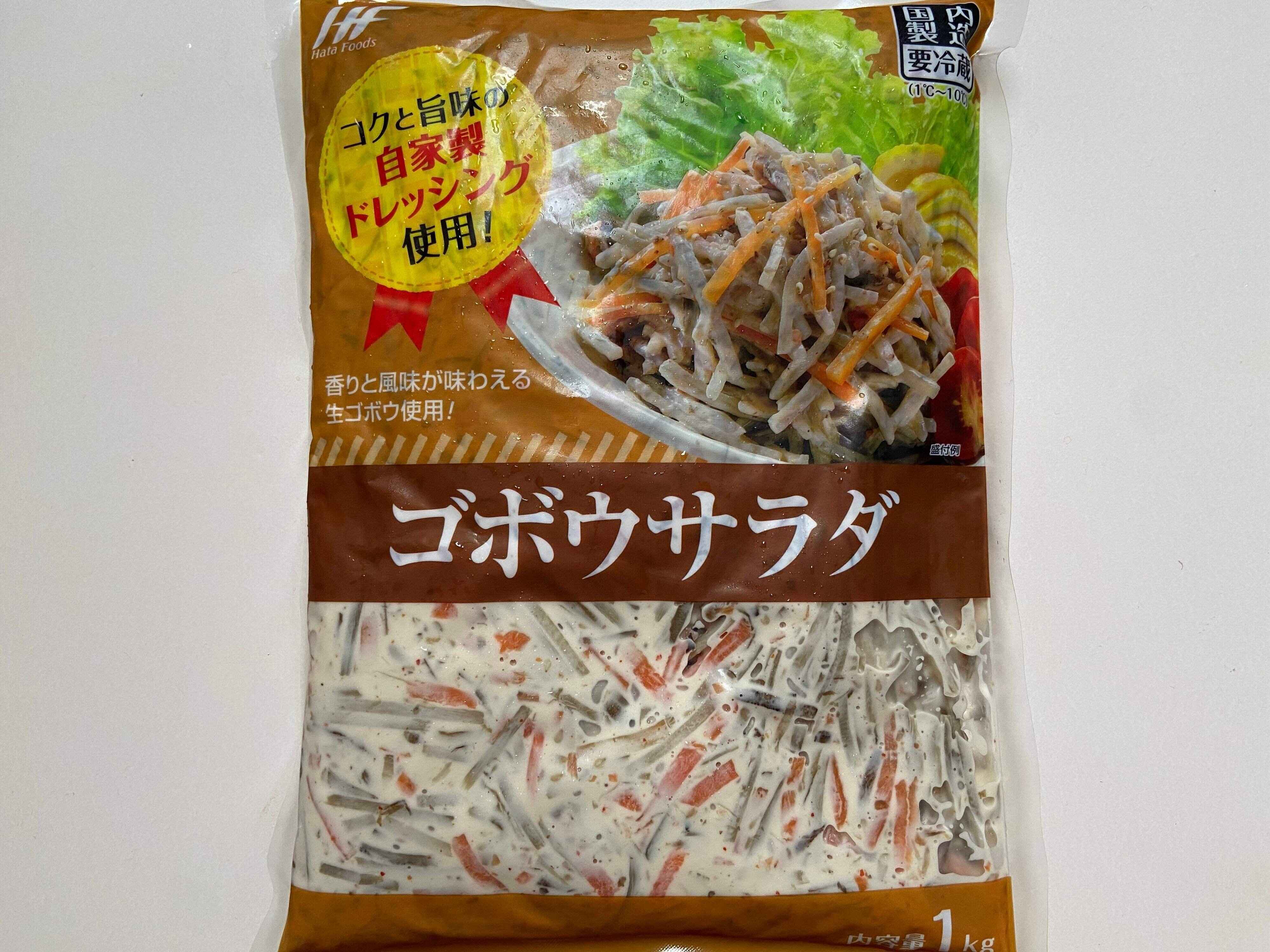 業務スーパーの名物1kg入りサラダシリーズのひとつ、「ゴボウサラダ」(購入時:429円)。