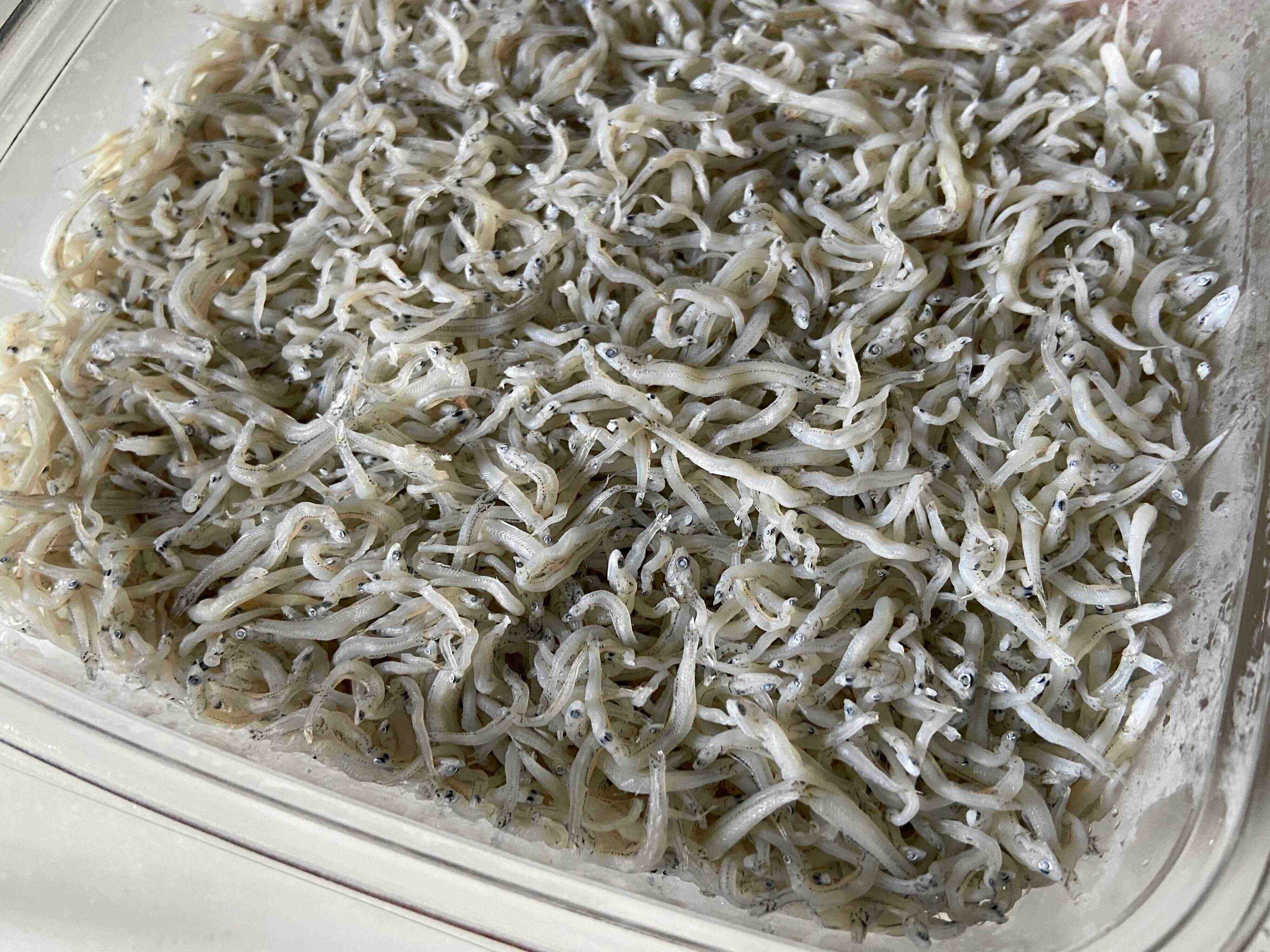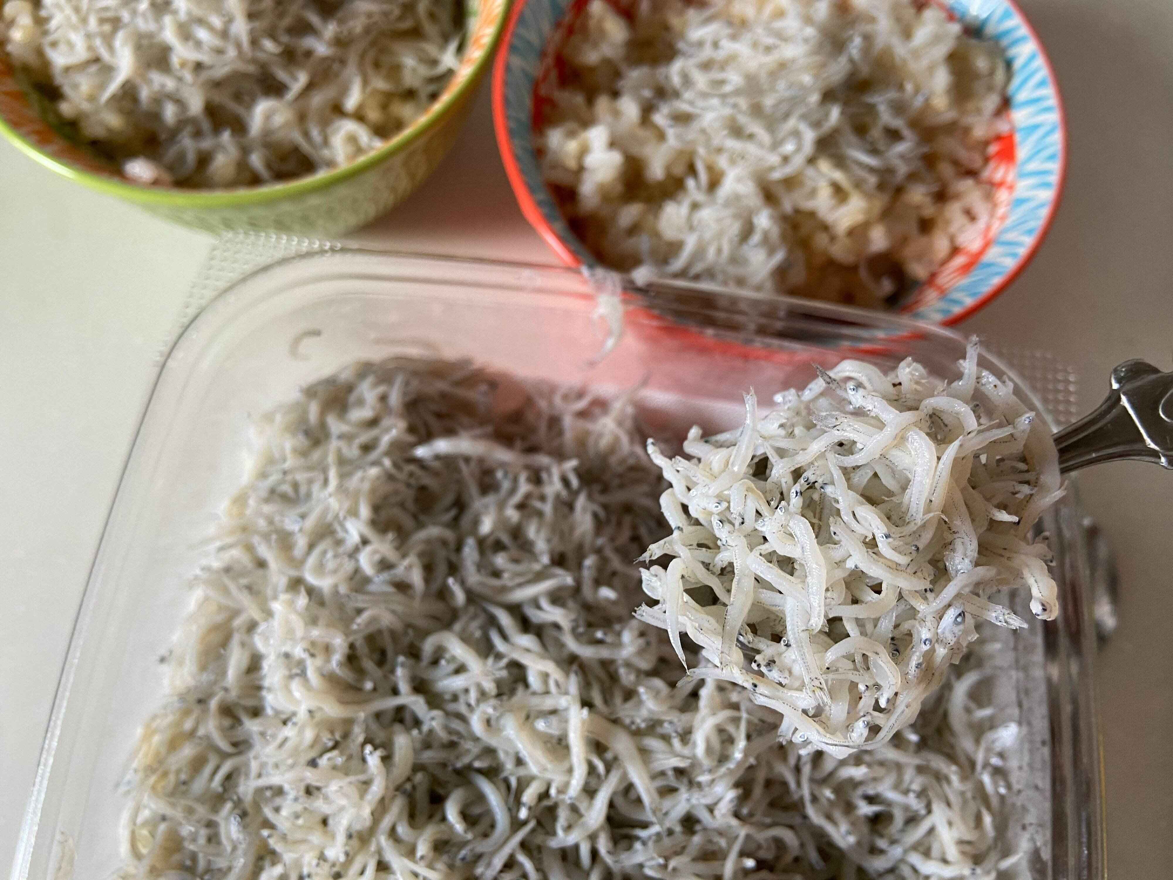 どーん!とたっぷり入ったしらす。コストコで一度買うと、スーパーで販売されているパックでは物足りなくなってしまいます。