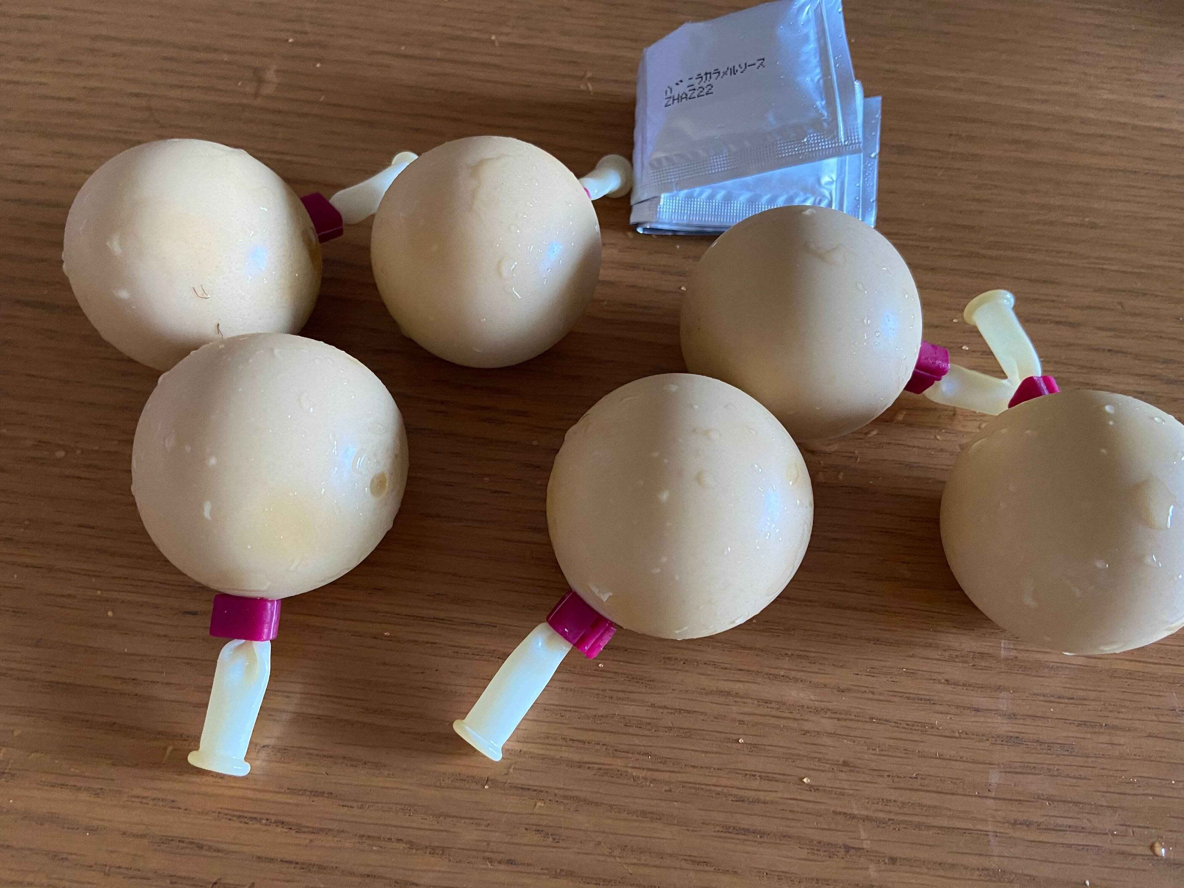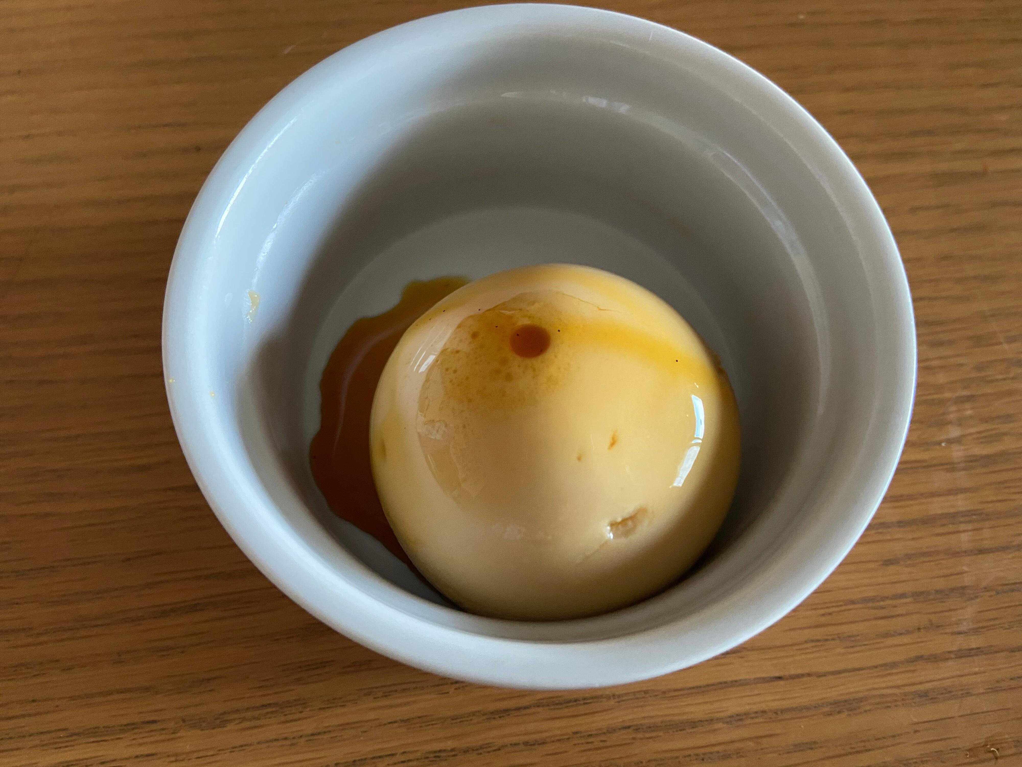 このプリンは開け方が変わっていて、それもまた食べる前のお楽しみ。爪楊枝をプツッとプリンに刺すと風船が割れるように一瞬でプリンが出てきます。コツは思い切って刺すこと!つるんときれいに出てきて爽快です。