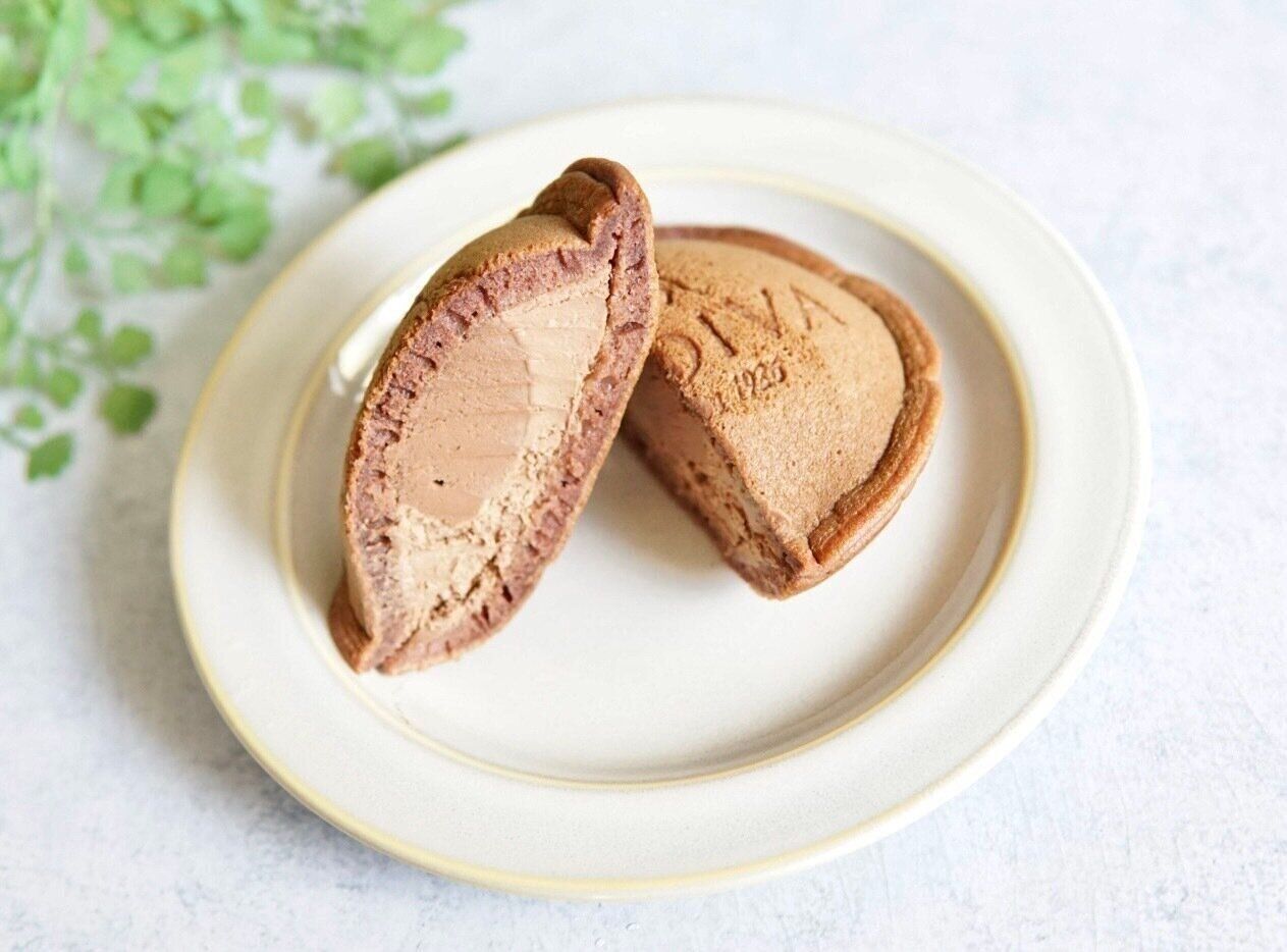 長いもが配合されたどらもっち生地のもちもち感はそのままに、深いショコラ感がプラスされたどら焼き生地に、チョコのコクが感じられるなめらかで軽めのチョコレートクリーム、そして中央には、濃厚で存在感抜群すぎる上質な生チョコが入っています。
