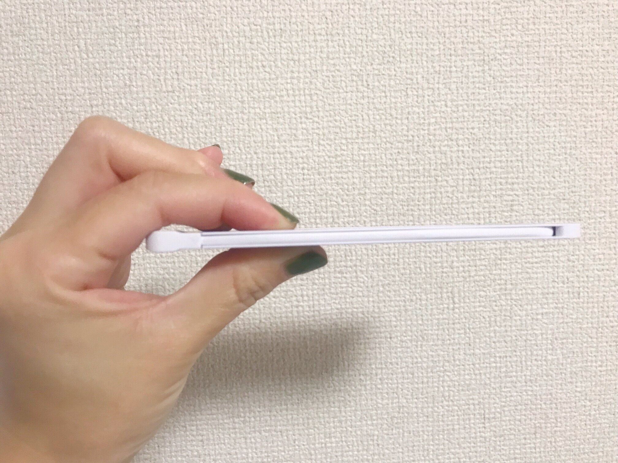このモバイル充電バッテリーの特徴の1つがスマートフォンよりも薄い点!厚みはわずか4.8mmなので小さな鞄にも収納しやすく持ち運びが便利!サイズはいiPhone7とほぼ同サイズです。本体の質量も85gという軽さなのもうれしいポイントです。