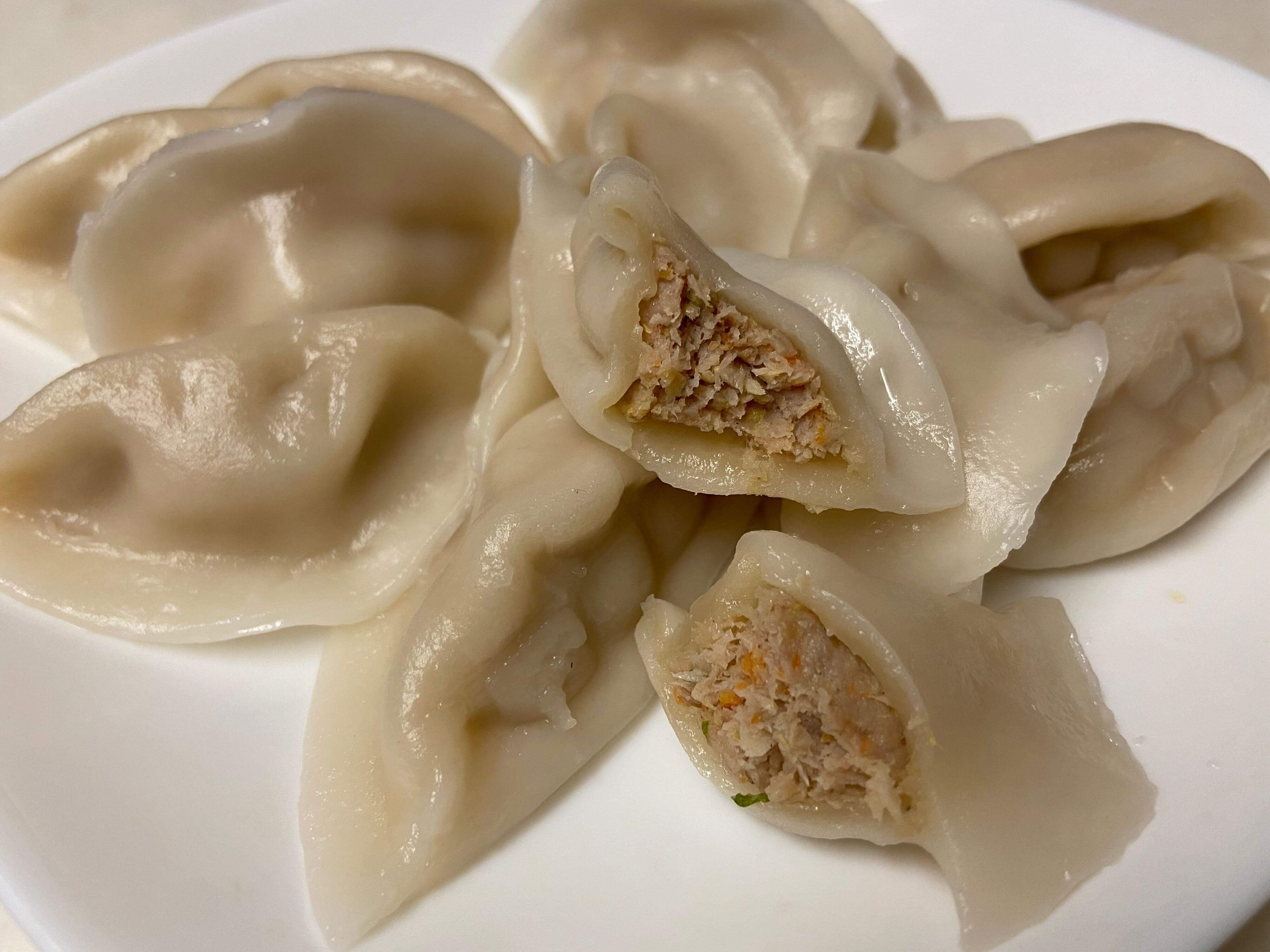 湯切りをしてお皿に盛り、タレやポン酢などお好みでつけていただきます。そのまま食べてみると中のあんにもしっかり味がついていて、皮がとにかくもちもちであとを引くおいしさ。こんなにもっちりと弾力のある水餃子は他で食べたことがありません。