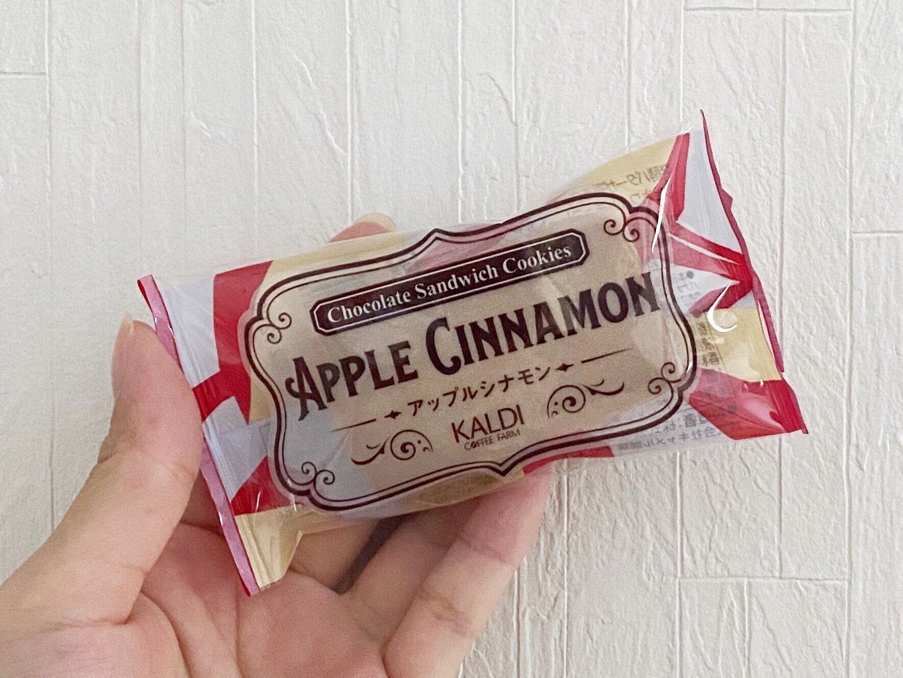 そのレジ横コーナーで、発売以来大人気の「チョコレートサンドクッキー」シリーズから、新フレーバーのアップルシナモンが登場。