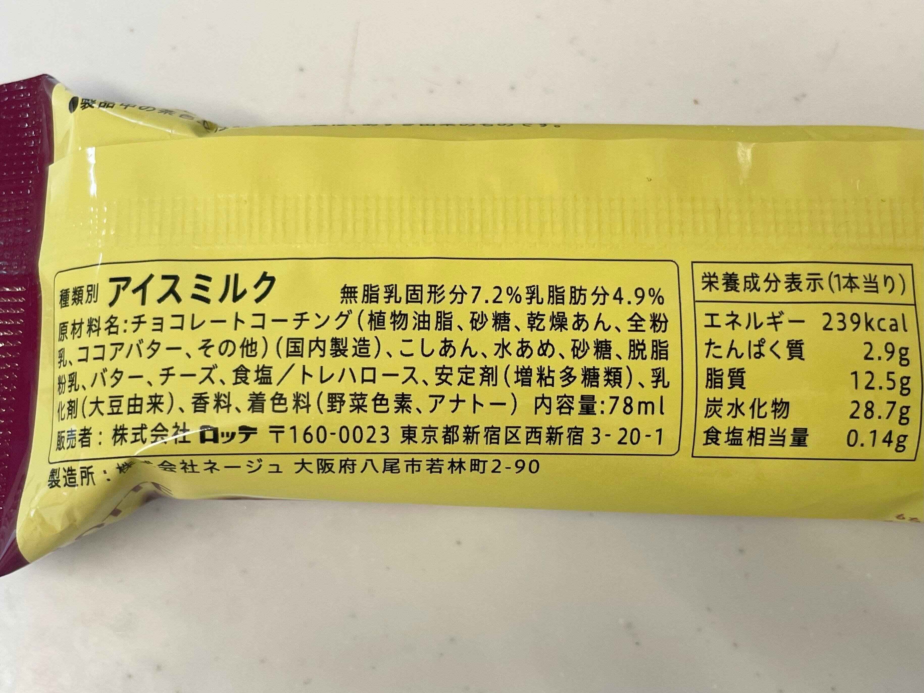 1本あたり239kcalとやや高めな印象。