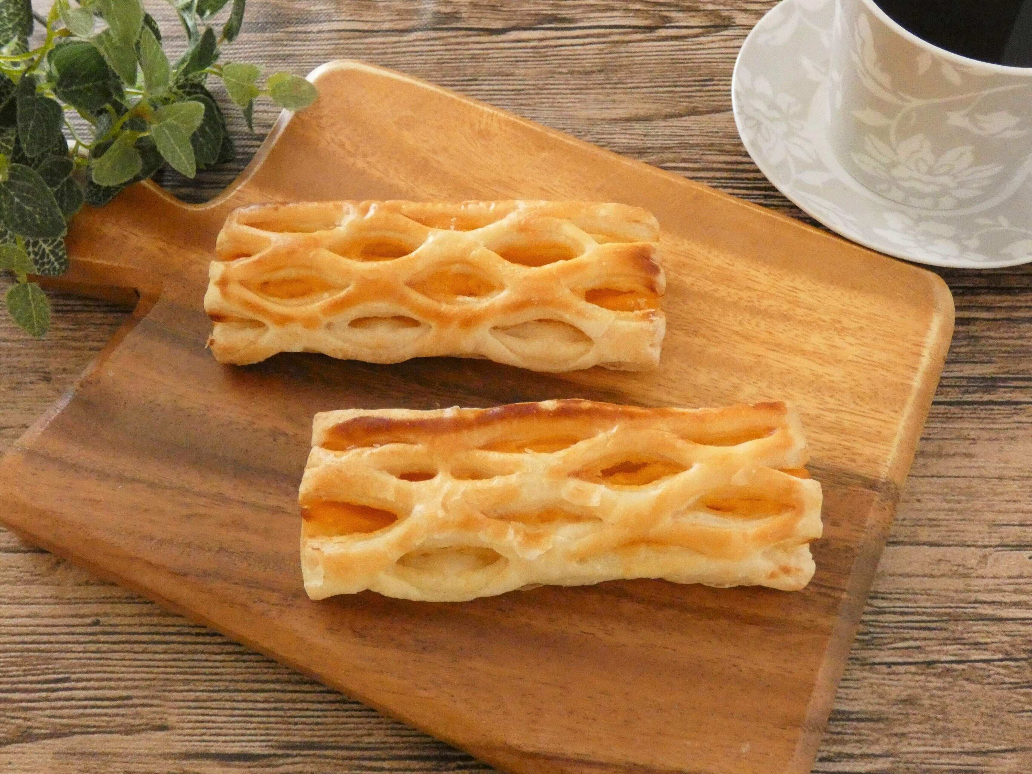 細めの食べやすいパイが2本入りで、パイの中にはかぼちゃあんとカスタード味クリームが包まれています。