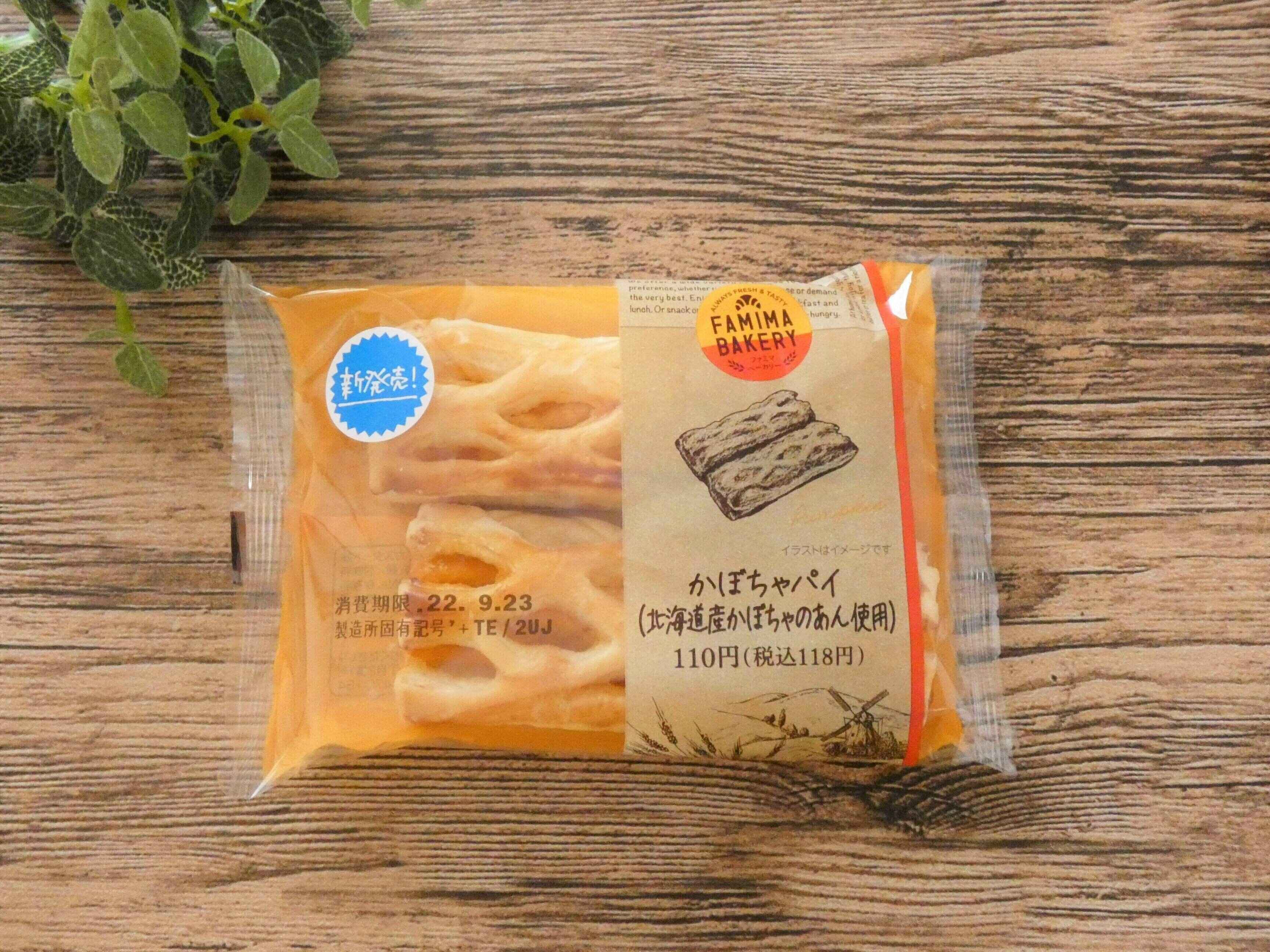 ファミリーマート新発売「かぼちゃパイ(北海道産かぼちゃのあん使用)」は2個入り118円。