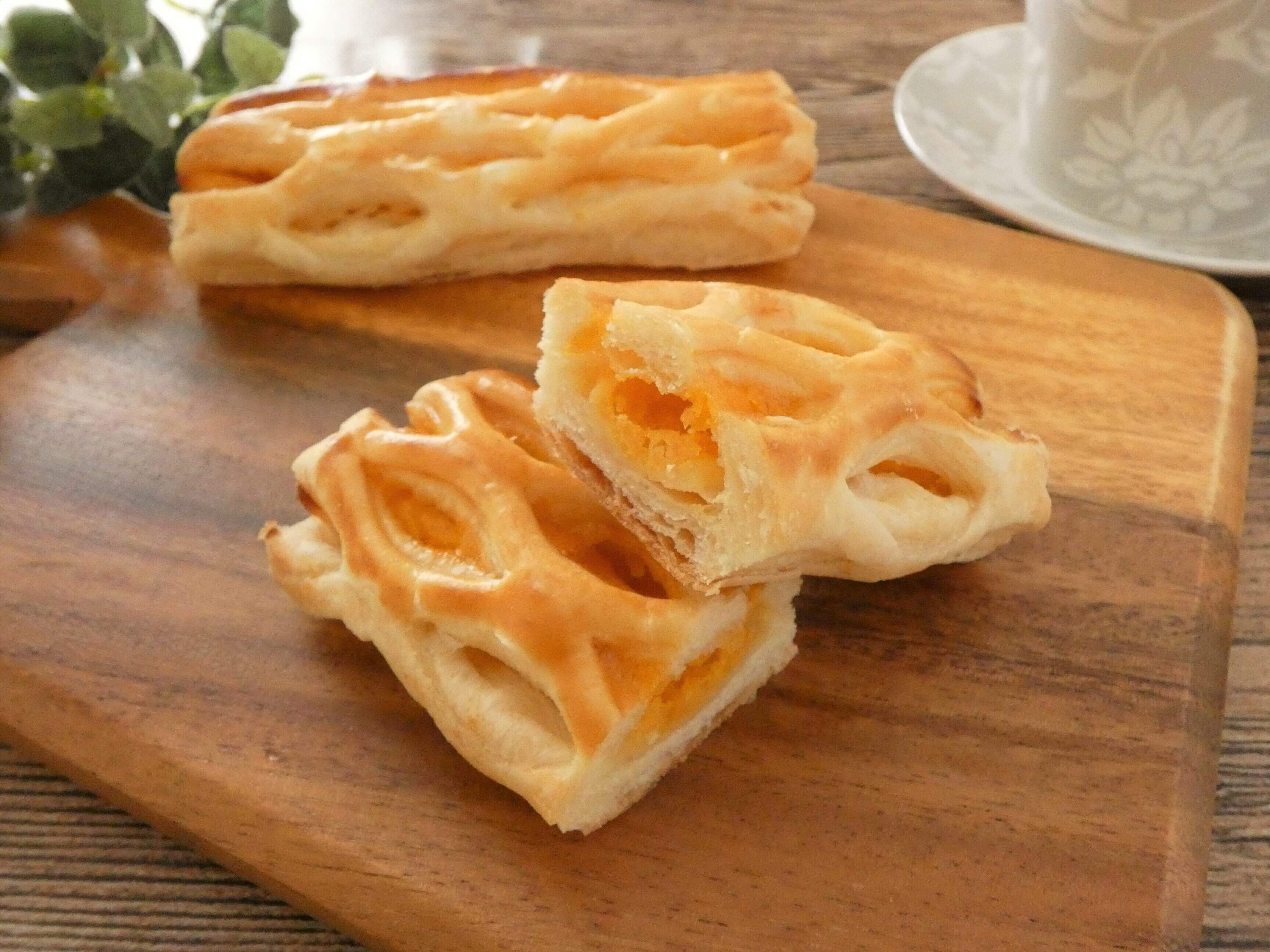 パイ生地はサクッとしてパクッとつまめる大きさです。カスタード味のクリームはなめらかで、かぼちゃあんの甘さはちょうど良くて優しい味わい。