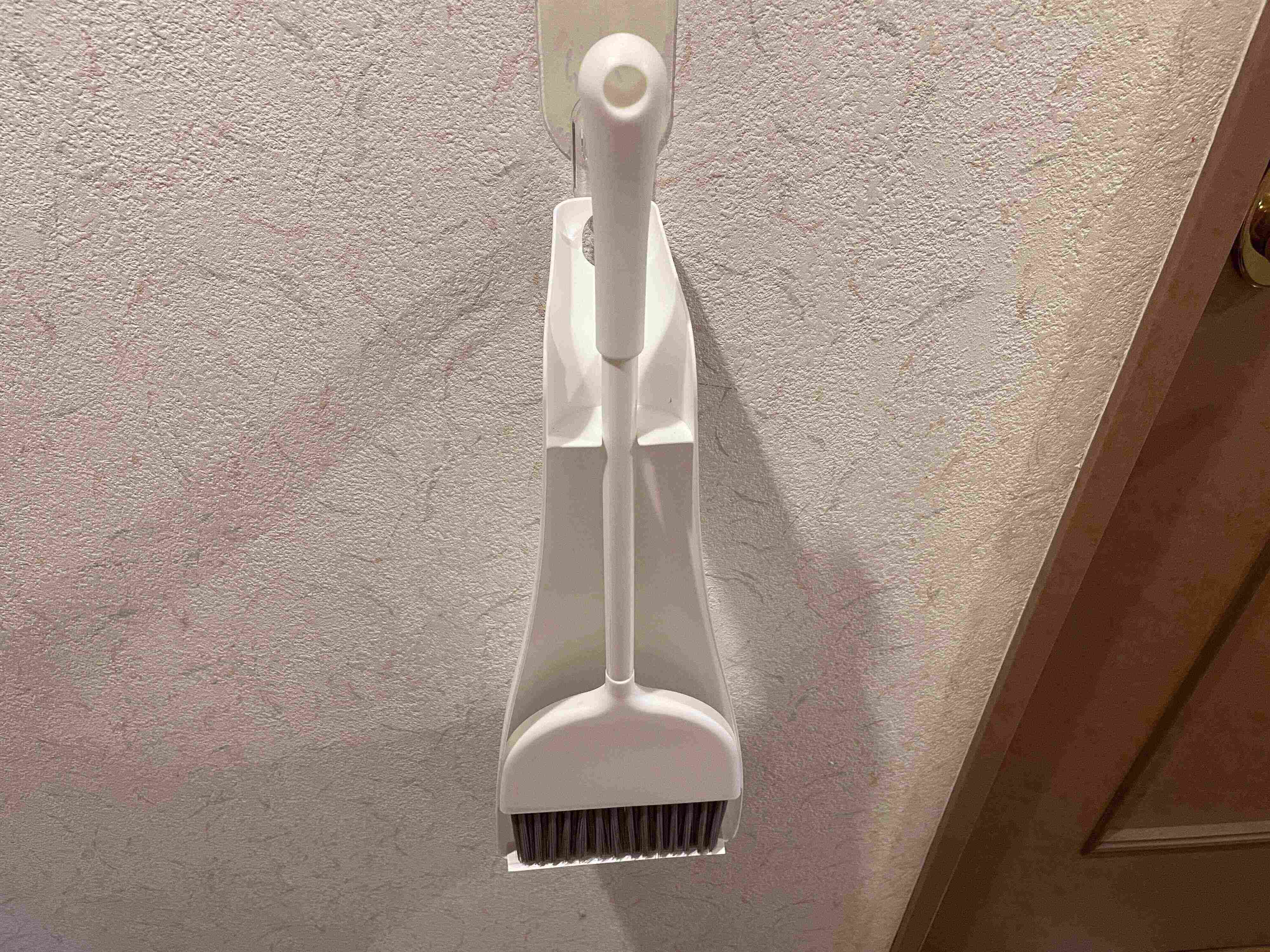 このほうきとちりとりは別売りですが、一緒に使うと、ほうきがちりとりにセットできスタンド収納になりますよ。
