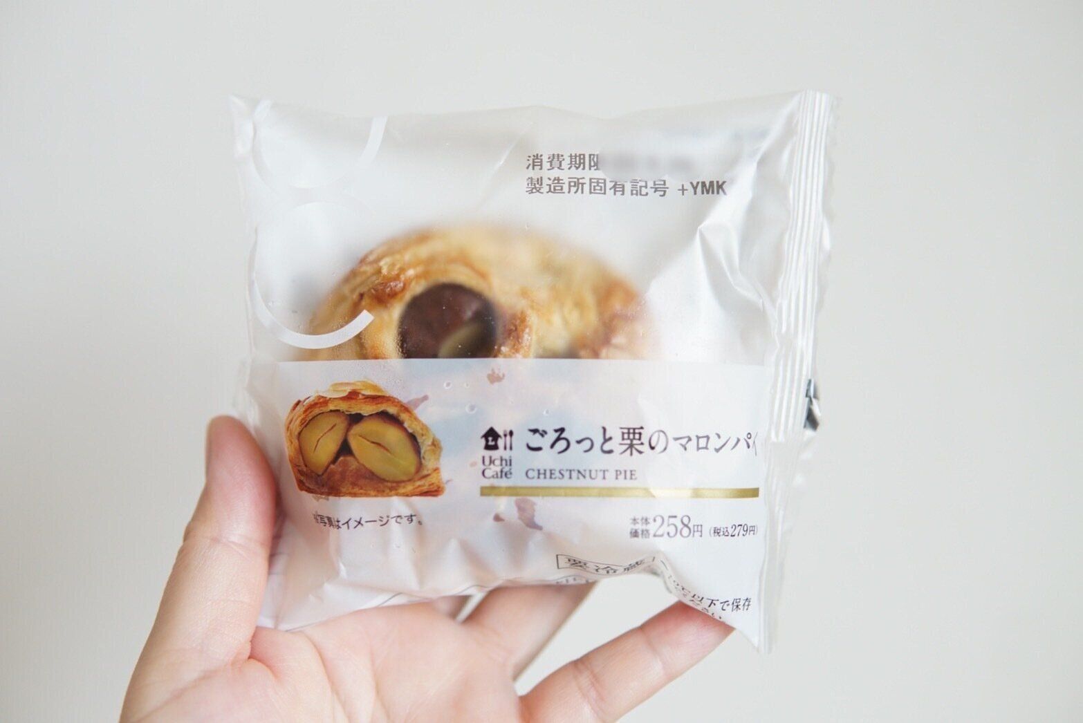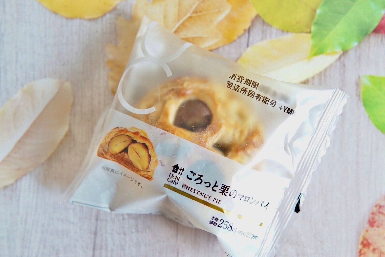 大きさは若干小ぶりですが、重さが感じられます。そして、パッケージの外からも確認できる、パイの隙間から覗くごろっとした栗の存在感に期待感が高まりますよ。パイ生地は、そのままいただいたら少ししんなりとしていましたが、いただく前にトースターで少し温めたら、もう少しサクッと違った食感になるのではと感じました。また、パイの上にのっているスライスアーモンドの食感がいいアクセントになっています。