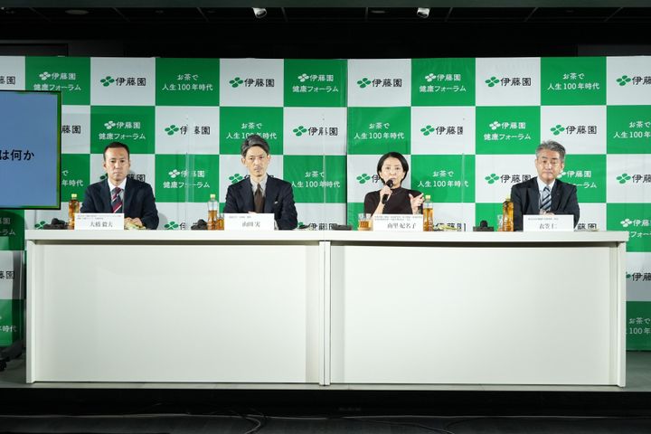 最後は三菱総合研究所 ヘルスケア&ウェルネス本部 健康・医療グループ 主席研究員の大橋毅夫氏をモデレーターに、伊藤園中央研究所所長・衣笠仁氏も加わって「健康長寿のカギを握るのは何か」について議論が行われました。