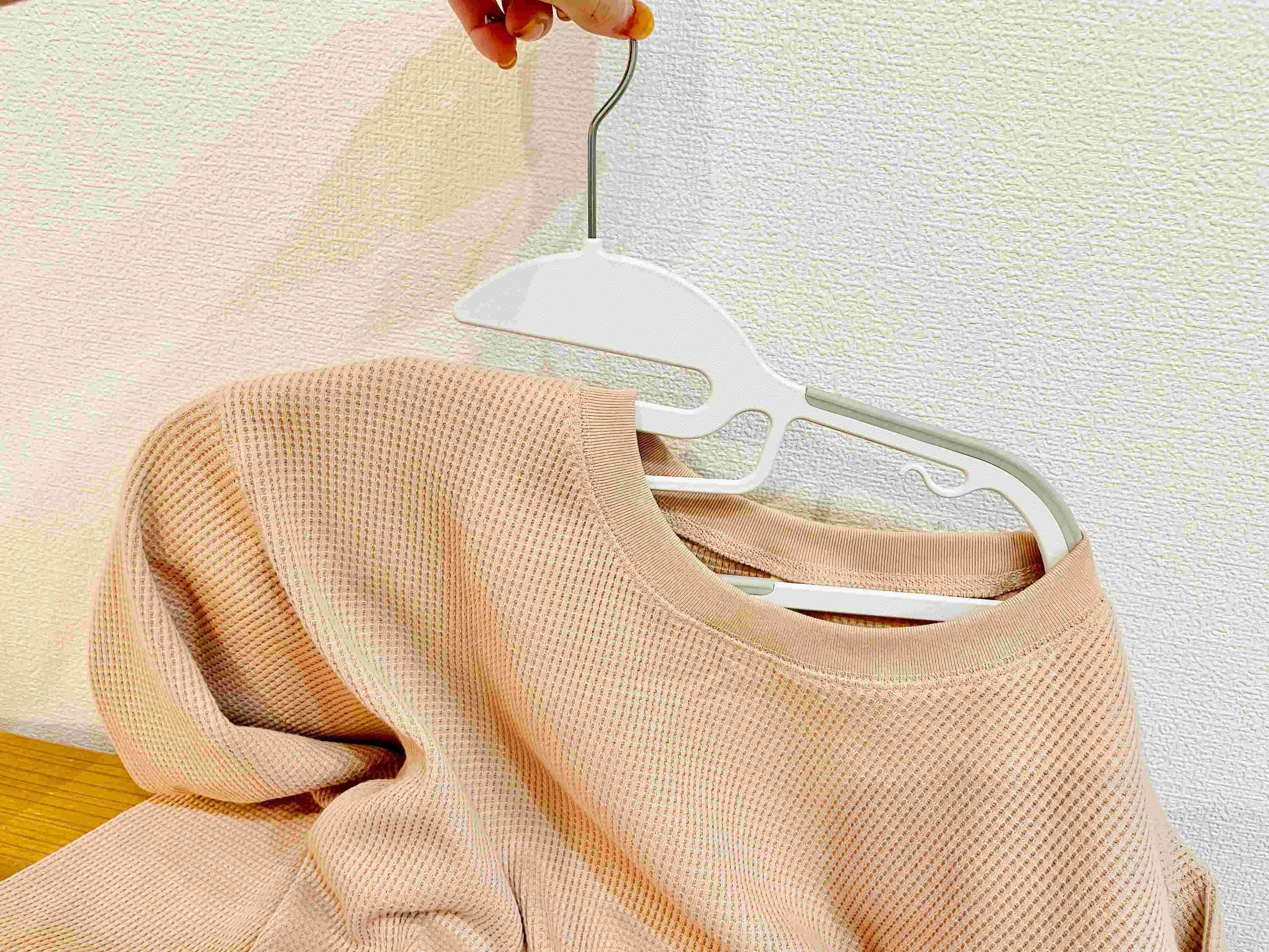 丁寧にハンガーに掛けないと、途中で服が引っかかってしまって、1回でサッと掛けられないのです。ハンガーから外す時も、スルッと外せない!