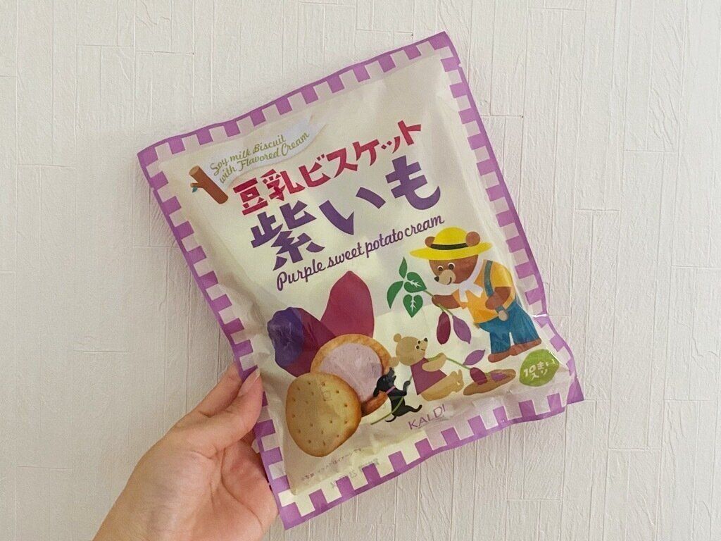 カルディで大人気のお菓子「豆乳ビスケット」に、新商品の「豆乳ビスケット紫いも」が仲間入りしました。