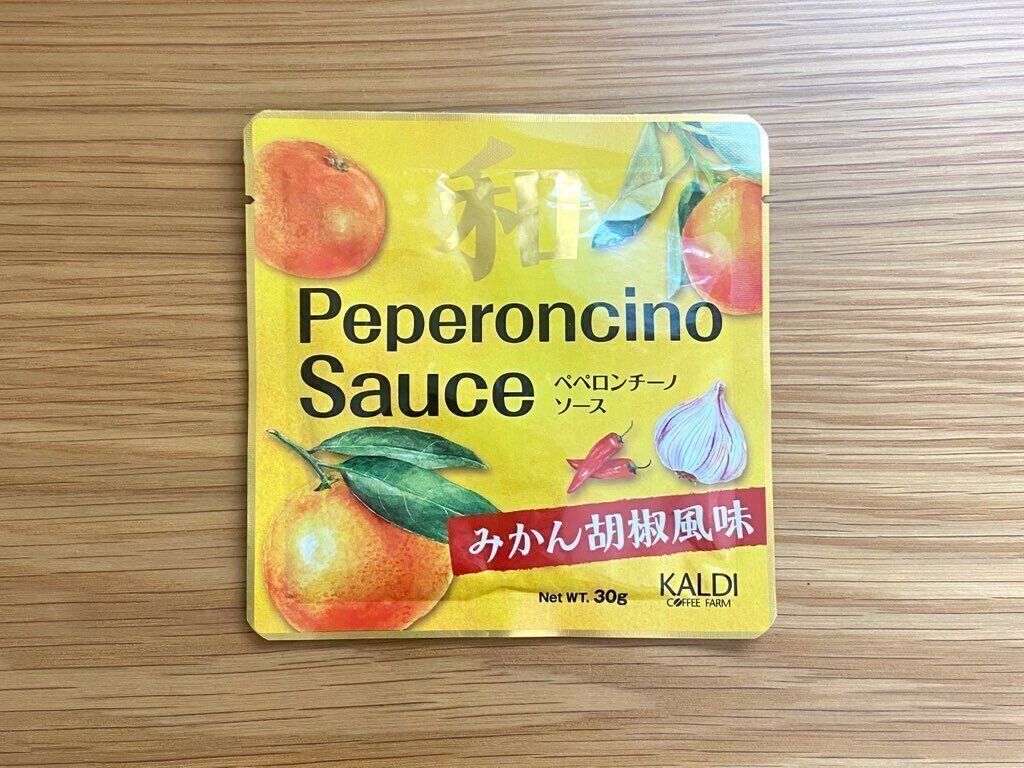 2022年夏、カルディオリジナルのパスタソースとして仲間入りした「和ペペロンチーノソースみかん胡椒風味」。